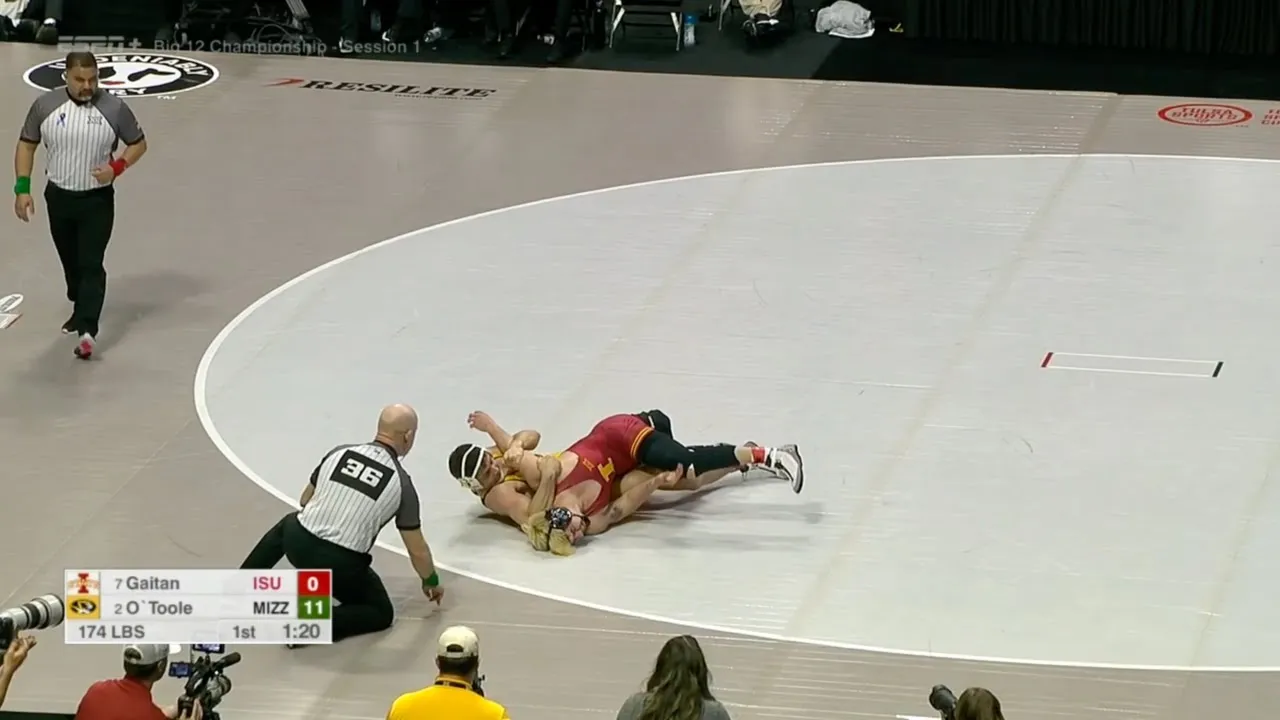 2025 Big 12 Wrestling Championships Quarterfinals 174lbs Keegan O`Toole (MIZZ) tech fall MJ Gaitan (ISU) I do not own this video, all credit/rights to ESPN/Big 12