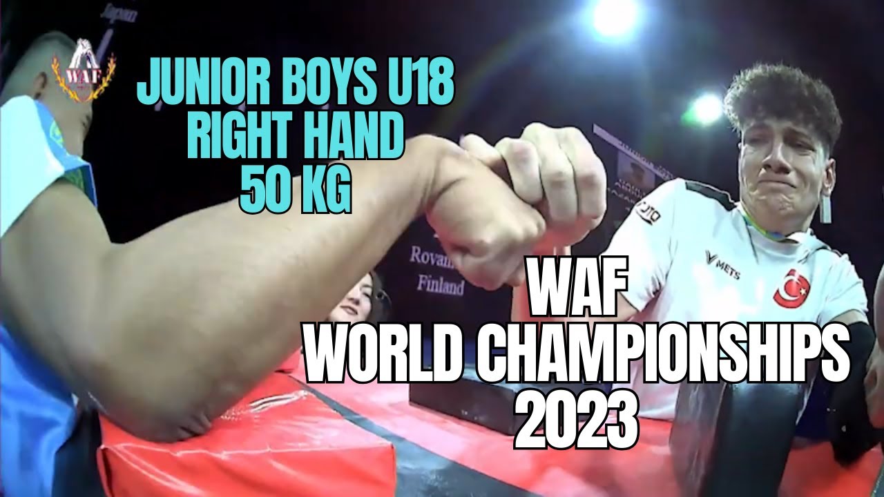 All matches from the 2023 WAF World Championships in Almaty, Kazakhstan for the Junior Boys Under-18 50 kg right-handed category. Matches: 0:00 - Sukhail Khotamov vs. Erzat Mynzhasar 0:07 - Daulet Abdulla vs. Zurab Kharibegashvili 0:26 - Rashid Mavigil vs. Ayush Kaushal 0:48 - Erik Sahakyan vs. Shokhjakhon Abdujamolov 1:05 - Jahongir Abdurasulov vs. Erzat Mynzhasar 1:12 - Sukhail Khotamov vs. Zurab Kharibegashvili 1:16 - Ayush Kaushal vs. Erik Sahakyan 1:20 - Shokhjakhon Abdujamolov vs. Erzat Mynzhasar 1:28 - Jahongir Abdurasulov vs. Rashid Mavigil 1:43 - Zurab Kharibegashvili vs. Ayush Kaushal 1:55 - Shokhjakhon Abdujamolov vs. Rashid Mavigil 2:09 - Daulet Abdulla vs. Erzat Mynzhasar 2:14 - Ayush Kaushal vs. Rashid Mavigil 2:43 - Erzat Mynzhasar vs. Rashid Mavigil (Semifinal) 3:15 - Daulet Abdulla vs. Rashid Mavigil (Final) Watch FULL livestreams at: https://www.youtube.com/@WORLDARMWRESTLINGFEDERATION Eastside Website: https://www.eastsidearmwrestling.com/ Support me on Ko-fi: https://ko-fi.com/eastsideaw Get Eastside Merch: https://www.etsy.com/sg-en/shop/EastsideAWShop Follow me on Instagram: https://www.instagram.com/gregyeoyo Music: N/A #armwrestling #singaporearmwrestling #eastsidearmwrestling #asianarmwrestling #WAF2023 #armsport #schoolboy #michaeltodd #devonlarratt #fitness #tournament #competition #sports