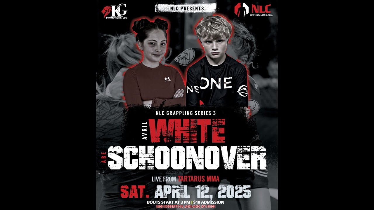 NLC Grappling Series 3 April 12, 2025 Live from Tartarus MMA in Ashland, KY Bout #7 Avril White of Tartarus MMA & BJJ makes her NLC Debut as she meets Abraham Schoonover (1-0) of One Academy in a Youth Open Weight BJJ Matchup! Join this channel to get access to perks: https://www.youtube.com/channel/UCZoxYen5PGFcOFxW5znMJnw/join