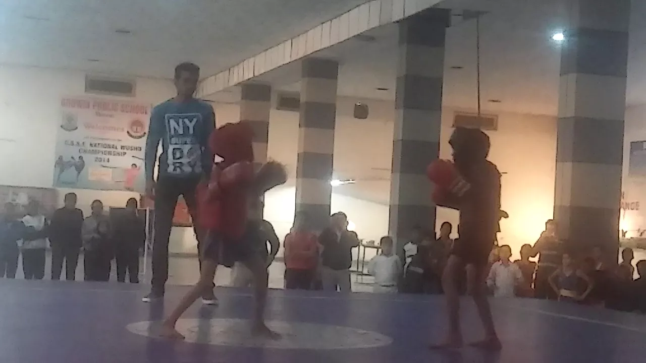 Akif khan ki video 17 vi sub junior disti Wushu fight village agwanpur meerut 15-12-2017