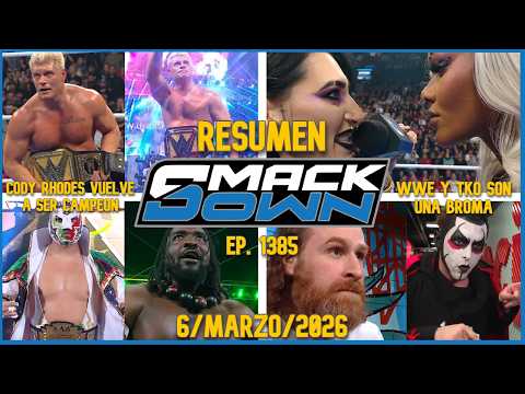 #wwe #wwesmackdown #codyrhodes #drewmcintyre #samizayn #elhijodeldrwagnerjr SUSCRIBETE PARA MÁS CONTENIDO Y APÓYANOS DÁNDOLE LIKE ¡CODY RHODES VUELVE A SER CAMPEON! | WWE Smackdown | 6 Marzo 2026 | RESUMEN Y RESULTADOS Bienvenidos a este video, en el que encontraran el resumen y resultados realizado por "Chilakiller TV" de WWE Friday Night SmackDown del 6 de Marzo de 2026, el episodio numero 1385 y numero 10 del 2026, fue celebrado desde el Moda Center en Portland, Oregon, Estados Unidos. Se transmitió por el canal USA en Estados Unidos y Netflix internacionalmente. Conto con los comentarios de Joe Tessitore & Wade Barrett, en la mesa de español estuvo Marcelo Rodriguez y Jerry Soto, además conto con la presencia de Cody Rhodes, Drew McIntyre, Johnny Gargano, Candice LeRae, Jacob Fatu, Sami Zayn, Danhausen, Oba Femi, Jade Cargill, Rhea Ripley, Carmelo Hayes, El Hijo de Dr. Wagner Jr., Alexa Bliss, Charlotte Flair, Giulia, Kiana James, Damian Priest, R-Truth, Fraxiom (Axiom & Nathan Frazer), Los Garza (Angel & Berto), The Motor City Machine Guns (Alex Shelley & Chris Sabin), The Wyatt Sicks (Dexter Lumis & Joe Gacy) y mucho más. Contacto ► chtvcontacto@gmail.com Apoyame uniendote al canal ► Paypal ► Canal Secundario ► Facebook ► Facebook Secundario ► Twitter ► Instagram ► TikTok ► FAIR USE. En virtud de la sección 107 de la Ley de Derecho de Autor de 1976, se permite el "uso justo" para fines tales como crítica, comentario, informes de noticias, enseñanza, becas, educación e investigación. El uso justo es un uso permitido por el estatuto de derechos de autor que de otro modo podría estar infringiendo. Algunas partes del material visual de este video no son de mi autoría. Todos los derechos y créditos pertenecen a sus legítimos propietarios. Capitulos 0:00 Intro 0:43 Informacion del show 1:06 Segmento de Randy Orton y Trick Williams 3:26 Carmelo Hayes habla con Nick Aldis 3:36 Carmelo Hayes vs. El Hijo de Dr. Wagner Jr. - WWE United States Title Match 4:25 Ilja Dragunov habla con Kit y el Miz 5:20 Nick Aldis habla