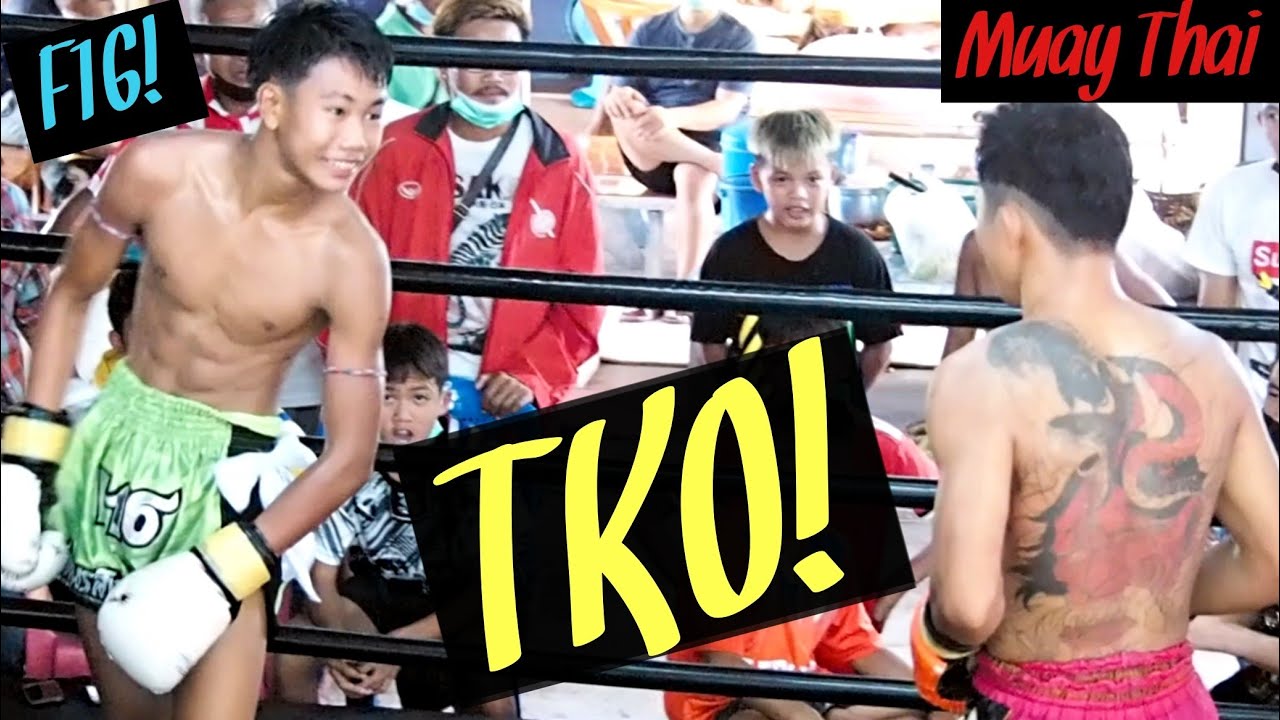 เอฟ16อัดรุ่นพี่แบกเกือบ3ก.ก(ซ้อม)F16(Blue)!Tko! 中学生 VS 怖そうなお兄さん(3キロ上)タトゥー全開!Muaythai fight!【ムエタイ】