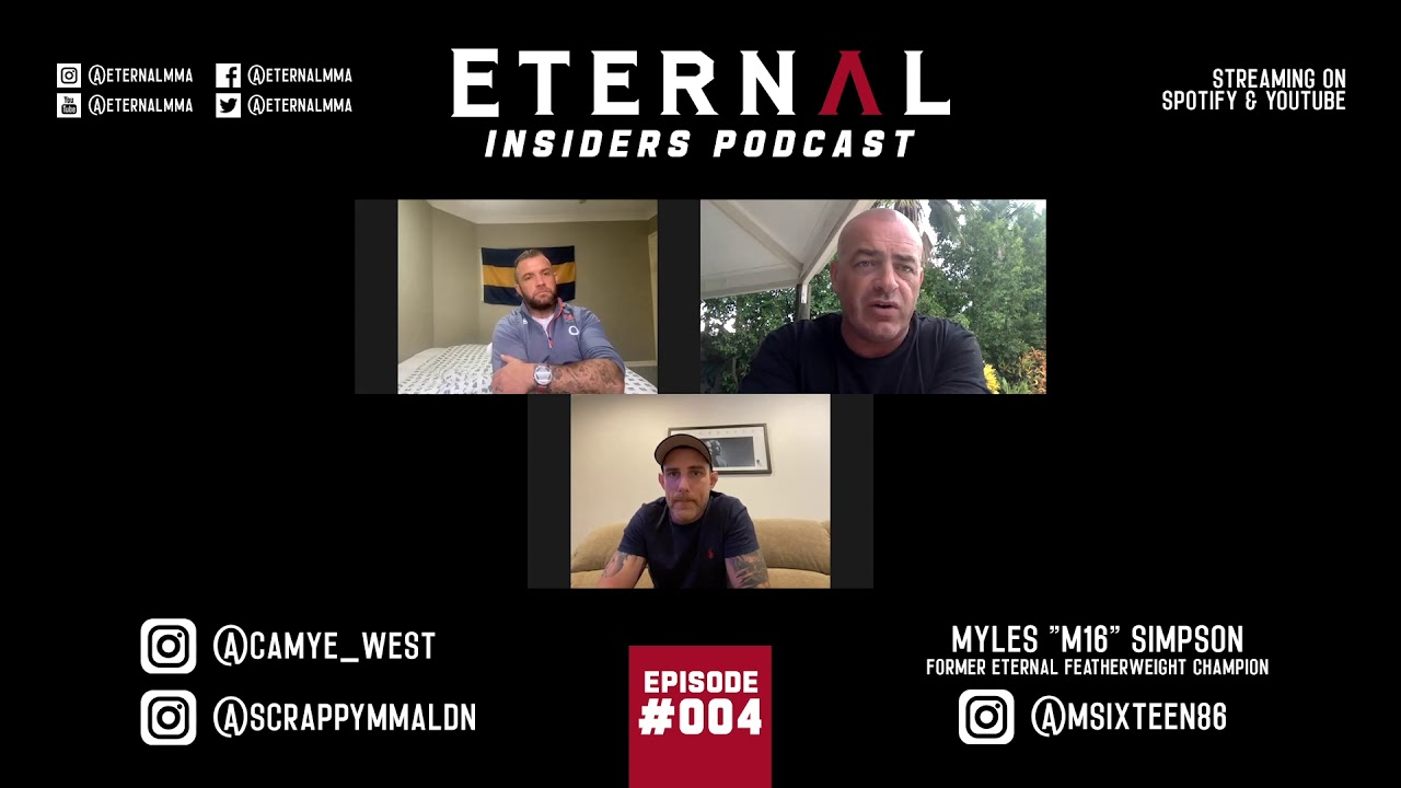 ETERNAL MMA INSIDERS - PODCAST Eternal MMA promoters Cam O'Neill and Ben Vickers have a chat weekly about all things to do with Eternal, reviews of events, details of upcoming events, breaking news and interviews with guests. This weeks guest is former Eternal MMA Featherweight Champion Myles Simpson. Eternal MMA is Australia and New Zealand's premier mixed martial arts promotion and host events all across Australia and in Auckland NZ. Based on Queensland's Gold Coast, Eternal MMA promote up to 11 events per year and have a talent pool filled with the very best Australian MMA athletes from amateur to pro. Eternal MMA operate a pro am mixed martial arts event model with the undercard filled with the very best amateur fighters across the Australia - Pacific region, and the main card stacked with the very best pro fighters in the most competitive and exciting matches regularly. Subscribe to the Eternal MMA youtube channel for videos of all fights from Eternal events including all the ko's, tko's submission wins and decisions at every show. Gold Coast MMA Perth MMA Adelaide MMA Melbourne MMA Australian MMA New Zealand MMA Auckland MMA www.eternalmma.com