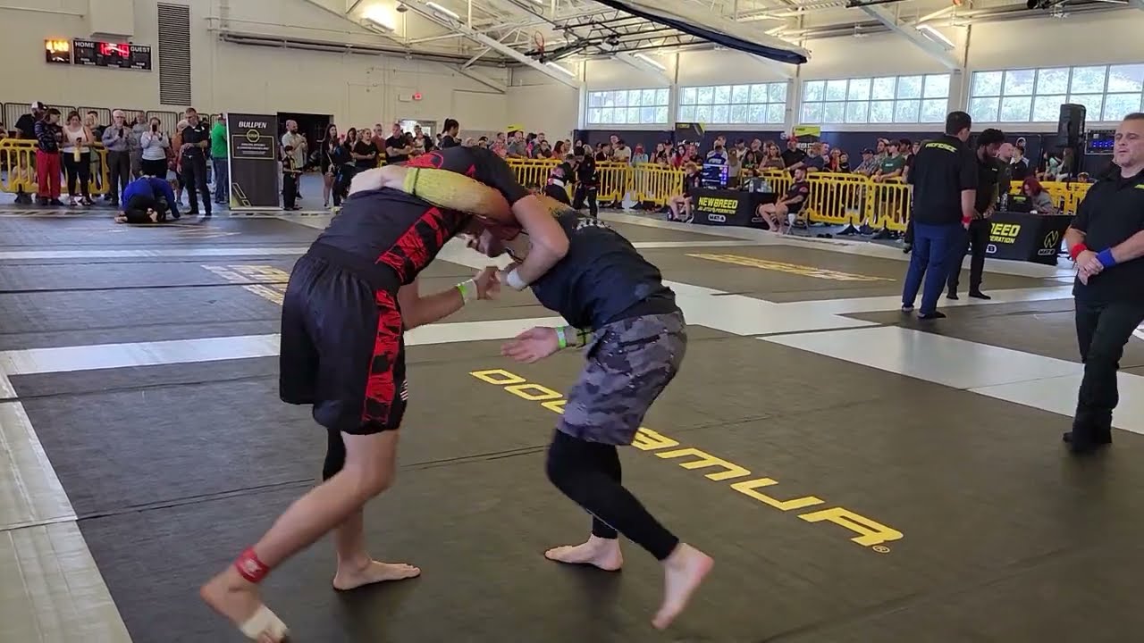 New Breed BJJ Competition Match 7 Jacksonville Florida, July 1, 2023 Red Vs Blue 00:15 Very nice bodylock take down to armbar flow from Blue. But Red snatches up that guillotine while Blue was admiring his handy work. The greatest opportunity for getting tapped or a quick tap is right after a takedown or scramble exchange. 00:46 Blue goes body lock again with the outside trip. Of all these videos this is the first I’ve seen of someone hitting that bodylock in hobbyist competition. The problem is in a straight grappling exchange the guy can just move his hips away. Where as, in real fighting the guy wants to straighten up to throw punches and you can crush his hips and back. Bodylock is excellent for fighting and here Blue is has made it work twice. That was a great flow that followed the bodylock 02:21 Very nice escape from triangle danger by Red then transition to the single leg. 04:27 Blue lets him get too far around his back without squaring up or bailing on the technique. Red didn’t waste an opportunity and went right for the finish with just a few seconds left. Great match by both guys. They were very aware with their scrambles and were on point with the standing takedowns. Very good match . Winner Red Via Rear Naked Choke (RNC) If you see yourself in one of these videos and want your name added please let us know. https://www.facebook.com/EverythingBJJOffcial Also, if you would like to give back to the BJJ community and help under-served individuals we would like to encourage you to check out https://www.specialkicks.com/ and help them if you are able. They are an organization to assist special needs individuals in getting enrolled in martial arts programs