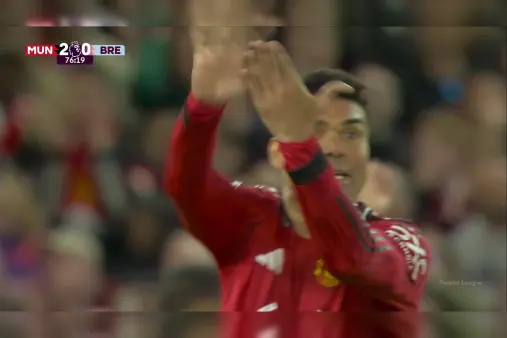 [Highlights] Casemiro receives a pass from Bruno Fernandes and fires a long-range shot just wide