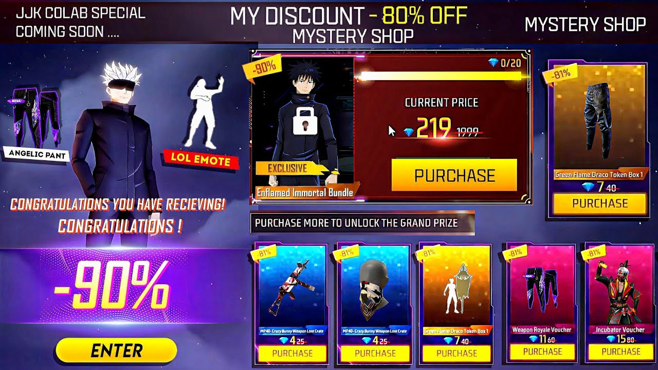 January Ff x Jujutsu Kaisen Mystery Shop 🤯💥| free fire new event| ff new event | new event free fire