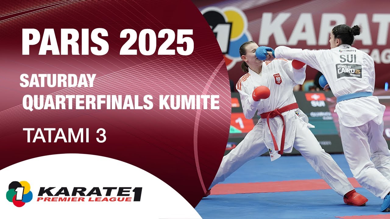 Karate1 PARIS: SATURDAY- Quarterfinals Kumite - TATAMI 3 | WORLD KARATE FEDERATION SUBSCRIBE ► http://bit.ly/N7c4H0 Official YouTube channel of the World Karate Federation *********************************** The World Karate Federation in Social Media: YouTube: https://www.youtube.com/user/WKFKarateWorldChamps Instagram: http://instagram.com/worldkaratefederation Twitter: https://twitter.com/worldkarate_wkf Facebook: https://www.facebook.com/wkfofficial TikTok: @worldkaratefederation Web: http://wkf.net/