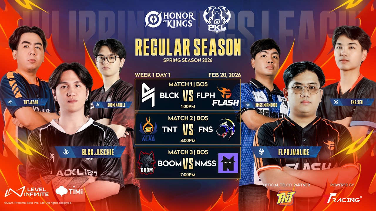 LIVE | PKL Honor of Kings Spring Season 2026 | Regular Season Week 1 - Day 1 Bagong yugto. Bagong pagkakataon. Simula na ang mas mabangis na bakbakan sa Philippine Kings League Spring 2026! Ngayong Week 1 – Day 1, ito ang mga best of 5 na laban na bubukas sa bagong season: ⚔️ 1:00PM – BLCK vs FLPH⚔️ 4:00PM – TNT vs FNS⚔️ 7:00PM – BOOM vs NMSS New faces. New rivalries. Walang kasiguraduhan dahil lahat may tsansa, pero iilan lang ang maghahari. 📺 Huwag palampasin ang opening day ng #PKL Spring 2026! #HonorOfKings #HOKEsports #PagkakataonMoNa