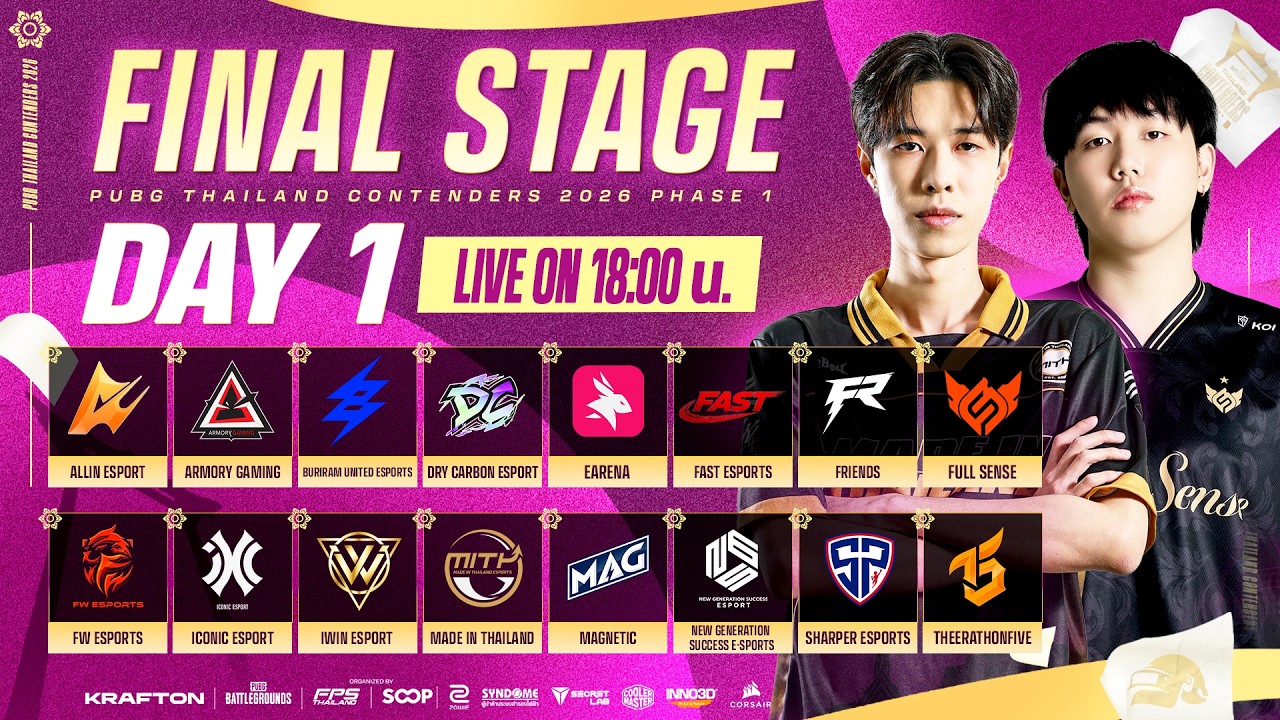 📆 ตารางการแข่งขัน ▪️Open Qualifier : 1 - 4 เมษายน 2026 ▪️Survival Qualifier : 6 - 9 เมษายน 2026 ▪️Finals : 19 -23 เมษายน 2026 🔴รอบนี้มีถ่ายทอดสด เริ่มโดดแรกเวลา 18:00 น. เป็นต้นไป --------------------- 💰 เงินรางวัลรวม 610,000 THB 🏆 1st - 200,000 THB 🥈 2nd - 100,000 THB 🥉 3rd - 60,000 THB ▪️4th - 40,000 THB ▪️5th - 20,000 THB ▪️6th - 20,000 THB ▪️7th - 12,000 THB ▪️8th - 12,000 THB 🎯 Most Kills : 10,000 THB 🥇 Survival Qualifiers Group A&B Winner : 8,000 THB 🍗 WWCD : 4,000 THB ต่อแมตช์ รูปแบบการแข่งขัน 🪂 𝗦𝘂𝗿𝘃𝗶𝘃𝗮𝗹 𝗤𝘂𝗮𝗹𝗶𝗳𝗶𝗲𝗿 ▪️ 24 ทีม จากรอบ Open Qualifier ▪️ อันดับ 3–10 จากรายการ PUBG Thailand Show-Off Stage Phase 1 ทั้ง 32 ทีมจะถูกแบ่งออกเป็น 2 กลุ่ม โดยจะแข่งขันกัน เพื่อคัดเลือกหา 5 อันดับแรกของแต่ละกลุ่ม (รวม 10 ทีม) ผ่านเข้าสู่รอบถัดไป 🪂 𝗙𝗶𝗻𝗮𝗹𝘀 𝗦𝘁𝗮𝗴𝗲 ▪️ 10 ทีม จากรอบ Survival Qualifier ▪️ 4 ทีมไทย จากรายการ PGS Circuit 1 ▪️ อันดับ 1–2 จาก PUBG Thailand Show-Off Stage Phase 1 (ในกรณีที่ทีมอันดับ 1–2 ได้สิทธิ์ไปแข่ง PGS สิทธิ์จะถูกเลื่อนให้ทีมในอันดับถัดไป) ทั้ง 16 ทีมจะลงแข่งขันกันตลอด 5 วันเต็ม เพื่อค้นหา แชมป์เพียงหนึ่งเดียว 🏆 🎥 ช่องทางถ่ายทอดสดและคอนเทนต์ใหม่ ๆ 🔵 Facebook: https://www.facebook.com/pubg.battlegrounds.th 🟠 Instagram: https://www.instagram.com/pubg_battlegrounds_th/ 🔴 Youtube: https://www.youtube.com/@PUBG_TH ⚫️ TikTok: https://www.tiktok.com/@pubgthailandofficial 🟣 Twitch: https://www.twitch.tv/pubgthailandofficial 🟢 SOOP: https://www.sooplive.co.kr/station/pubgth —------------------------------------------------------------- ติดตามอัพเดทพับจีอีสปอร์ตก่อนใครที่ : PUBGESPORTS.COM/TH #พับจี #PUBG #KRAFTON #Battlegrounds #PUBGEsports #PUBGContenders #TPP #FPSThailand #SOOPTH #ZOWIE #Syndome #CoolerMaster #Inno3D #CORSAIR #Secretlab