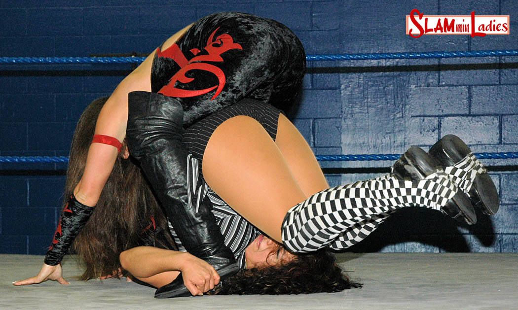 One of the biggest mistakes in SLAMminladies history….wearing a necktie into a match with Malia! Predictably this does not go well for Venus as she’s Snapmared and choked by her poorly chosen fashion accessory! A severely intimidated ref is of little help but believe it or not Venus does survive her colossal blunder and even gives Malia a taste of the tie around her neck. Venus tries to exploit the ineffective ref by descending to Malia’s depths of rule breaking but she can’t beat the best at her own game for long. Venus has more success keeping it clean taking advantage of Malia being just as angry with the ref as she was with her and scoring a big Bodyslam. On the verge of scoring a huge upset she thinks she has to go high risk, but will it be high reward or just another youthful blunder leading to another notch in Malia’s belt.
