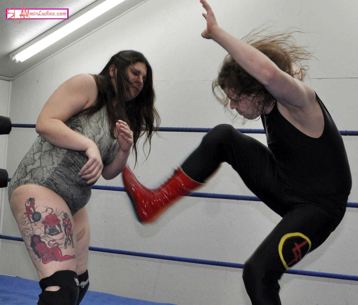 We open on an angry LT who has a number of issues about women in wrestling. Eager to prove a point, he issues an open challenge to any woman to face him in the ring--A challenge that is answered by Miss Rachel. As confident as LT claims to be, he doesn't take any chances by actually fighting fairly. LT immediately resorts to a rake to the eyes to gain the advantage, followed by a quickly applied Sleeper that leaves Miss Rachel helpless and it is not long before she is out cold. But LT is not done yet and continues to abuse his already defeated and barely conscious opponent. Stomps, chokes and yet more Sleepers keep Miss Rachel on the canvas as LT strives to prove his point. Even the late arrival of referee Shawn Spears to try and bring proceedings to a merciful halt does not deter LT from getting a final few shots in.