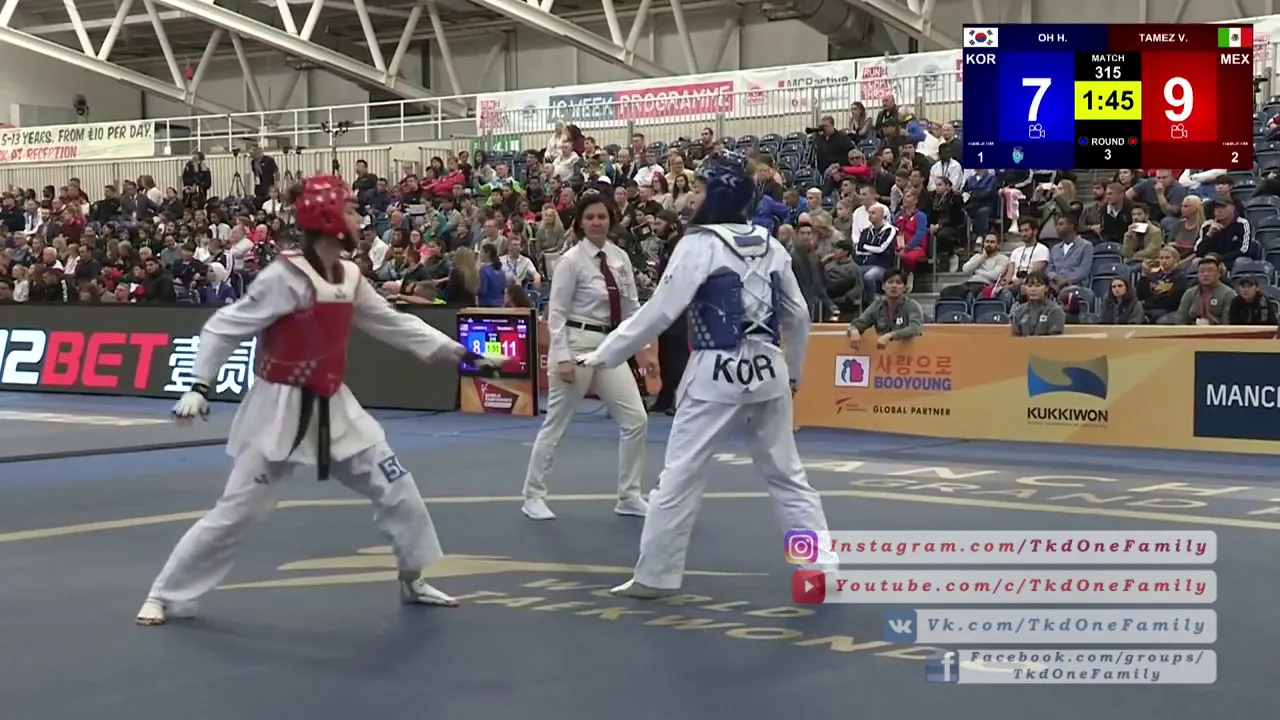 Hyeri OH (KOR) vs Victoria TAMEZ (MEX) 2018 Manchester World Taekwondo Grand Prix 1/8 F-67 315 Insta: https://www.instagram.com/tkdonefamily/ Youtube: https://www.youtube.com/c/tkdonefamily VK: https://vk.com/tkdonefamily FB: https://facebook.com/groups/tkdonefamily
