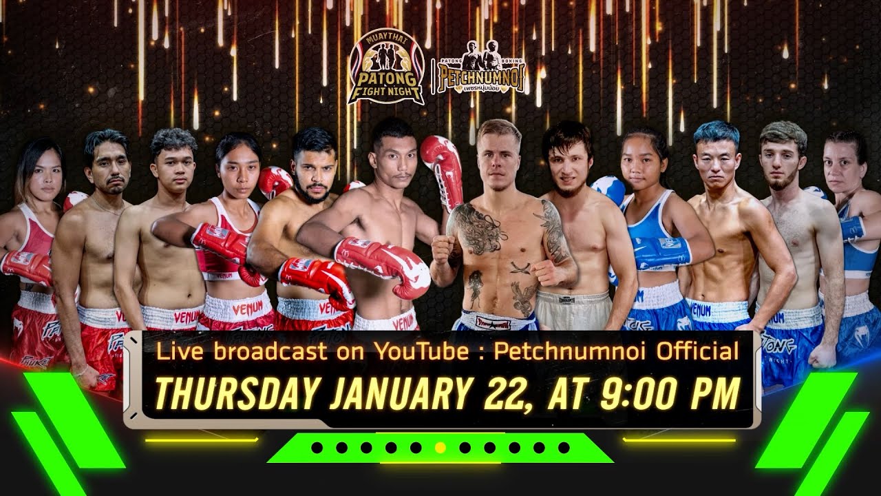 [Live] ศึกป่าตองไฟท์ไนท์ วันพฤหัสบดี ที่ 22 มกราคม 2569 เวลา 21:00 น. Patong Fight Night 22 JANUARY 2026 #มวยไทย #มวยดี #มวยสนุก #มวยพลิก #ป่าตอง #สนามมวยป่าตอง #นานาชาติ #เพชรหนุ่มน้อย #PETCHNUMNOI #MUAYTHAI #PATONG #PHUKET #PATONGFIGHTNIGHT #FIGHT #thailand #martialarts #brutal #boxing #thaiboxing #stadium
