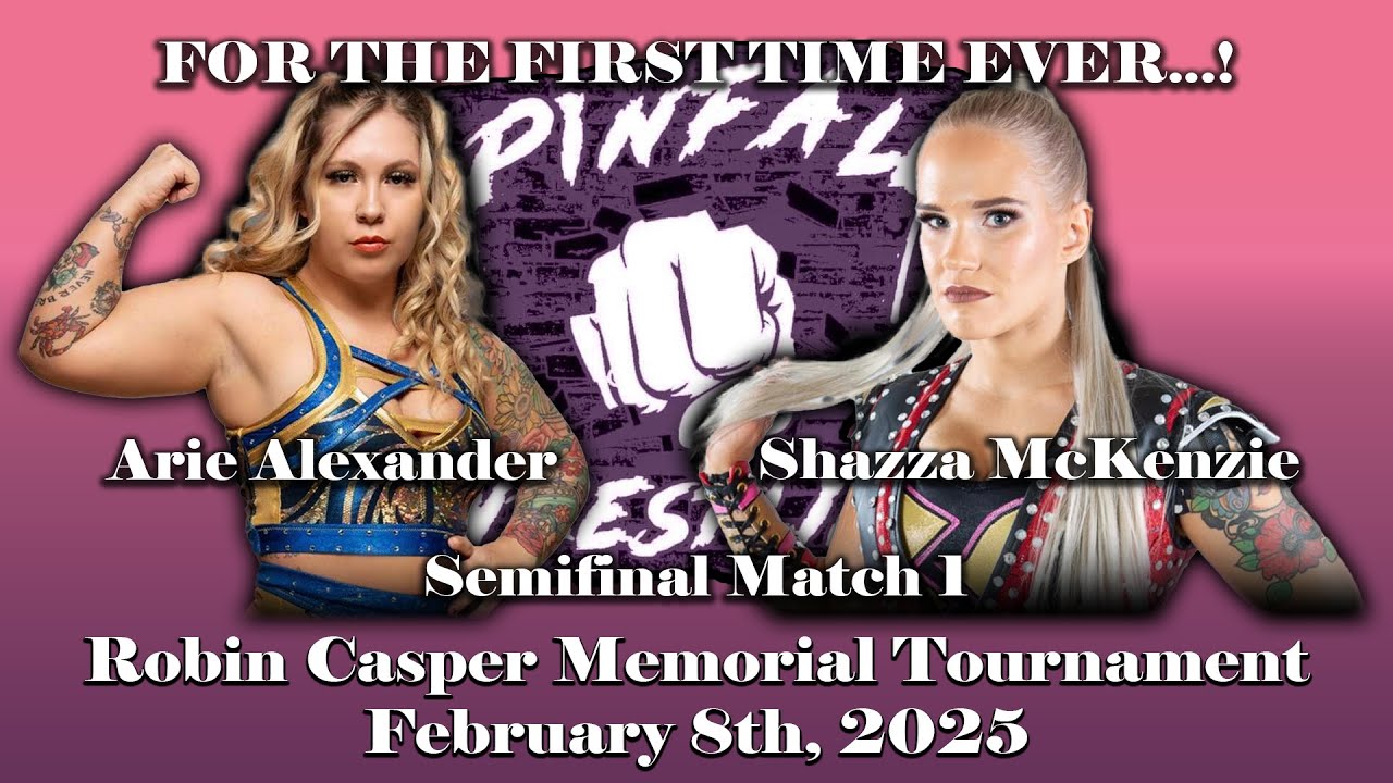 In the first semifinal match of the Robin Casper Memorial Tournament, Arie Alexander goes up against Shazza McKenzie for the FIRST TIME EVER… Originally taped February 8, 2025 at "The Robin Casper Memorial Tournament" Ring Announcer: Eric Roe Referee: Jeff Grace Filming and Editing: Andrew Thannen Arie Alexander entrance music: "The Gunner" by Machine Gun Kelly Shazza McKenzie entrance music: "Heart/Core (Shazza McKenzie)" by Cameron Eyre Pinfall Wrestling claims no ownership of any copyrighted music used. All rights belong to their respective owners. Follow us on Facebook to stay updated on upcoming events: https://www.facebook.com/PWASpringfield