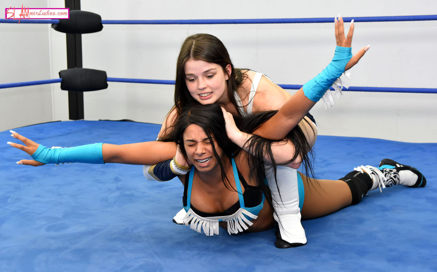 Renee is already in the ring and issues an open challenge to anyone in the locker room who's up for a fight. Enter Zoe, who happily accepts the challenge. Very, very happily might we add. Zoe quickly finds out that Renee is quite proficient at technical wrestling, but to her credit she manages to hold her own. Renee then turns things up a gear, stomping Lucas down in the corner before trapping her in a Sleeperhold that nearly puts her out cold. Zoe manages to fight out. Don't be fooled by her upbeat demeanor - she can throw down when she needs to. Renee finds this out first-hand when she gets hit with an acrobatic legdrop. Zoe scores numerous near falls and near-submissions throughout the final stages of the match with kicks, Clotheslines, Suplexes, a Boston Crab, and Full Nelson/Camel Clutch combination. Eventually a modified Cobra Clutch proves too much to handle for one of these ladies, having her hand drop to the mat three times, while her opponent gets hers raised in victory.
