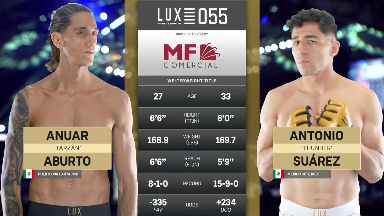 Explosivo final en el LUX 055 desde Guadalajara. Antonio “Thunder” Suárez se lleva el cinturón de las 170 lbs tras conectar un right hook brutal que definió la pelea ante Anuar “Tarzán” Aburto. 💥 Acción, poder y emoción al máximo nivel del MMA. --------------------------------------------------------------------------------------------------------------------------- 👉Únete a la comunidad de Lux Fight League: Vive la emoción de la MMA con combates poderosos, análisis profundos y contenido exclusivo: https://luxfightleague.com/ ¡Explora nuestros eventos! ➡️https://luxfightleague.com/eventos/ 📲Mantente Conectado para Más: 📲 Síguenos en las redes sociales 👇 📲 Instagram: https://www.instagram.com/luxfightleague 📲 Facebook: https://www.facebook.com/luxfightleague 📲 Twitter: https://www.twitter.com/luxfightleague 📲 TikTok: https://www.tiktok.com/@luxfightleague 💻 Official Website: https://www.luxfightleague.com
