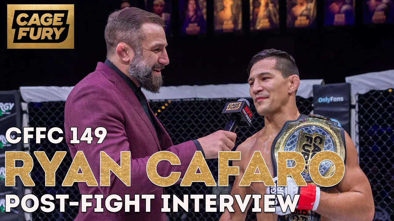 Reigning CFFC featherweight champion Ryan Cafaro talks to Michael Chiesa after his first-round TKO win over Justin Patton in the main event of CFFC 149, which took place at New Jersey's incredible Hard Rock Hotel & Casino Atlantic City. Catch the full replay on UFC FIGHT PASS: https://ufcfightpass.com/video/899575 Get one month of UFC FIGHT PASS for just $1 here: https://ufcfightpass.com/purchase?licences=174%2C172%2C192%2C166%2C148%2C170%2C168&voucher=EXTRA