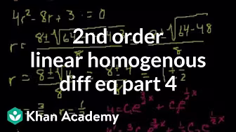 Courses on Khan Academy are always 100% free. Start practicing—and saving your progress—now: https://www.khanacademy.org/math/diff... What happens when the characteristic equations has complex roots?! Watch the next lesson: https://www.khanacademy.org/math/diff... Missed the previous lesson? https://www.khanacademy.org/math/diff... Differential Equations on Khan Academy: Differential equations, separable equations, exact equations, integrating factors, homogeneous equations. About Khan Academy: Khan Academy offers practice exercises, instructional videos, and a personalized learning dashboard that empower learners to study at their own pace in and outside of the classroom. We tackle math, science, computer programming, history, art history, economics, and more. Our math missions guide learners from kindergarten to calculus using state-of-the-art, adaptive technology that identifies strengths and learning gaps. We've also partnered with institutions like NASA, The Museum of Mo