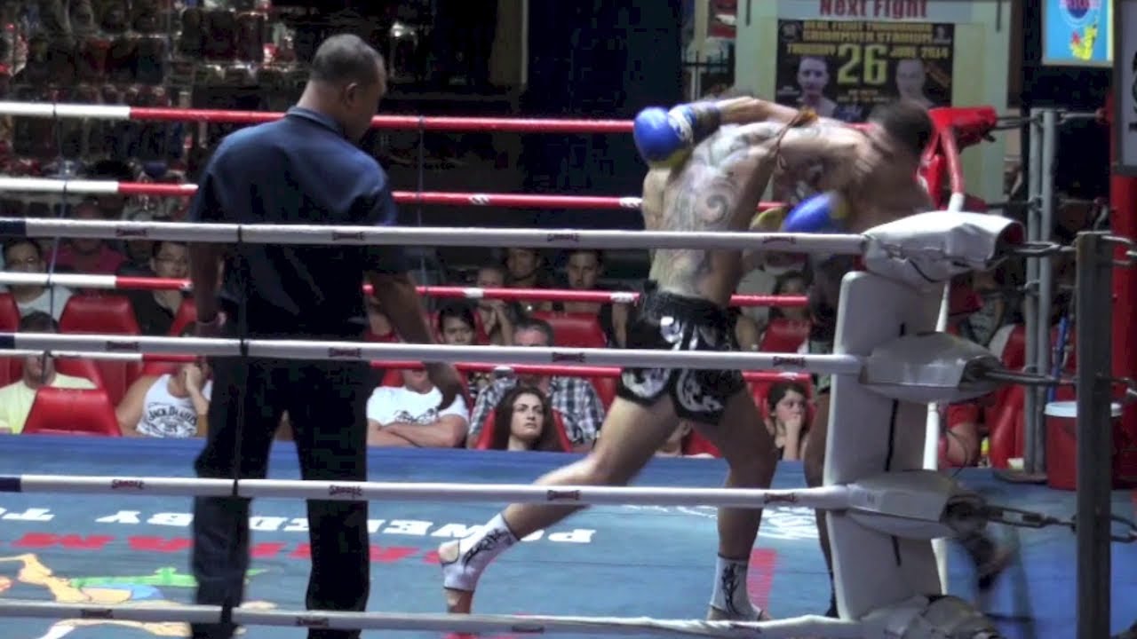 Tiger Muay Thai sponsored fighter Kevin Foster from England fights Taharnaek, a fighter renowned for his dangerous elbows, at Patong boxing stadium on the 23rd of June 2014. Music: "Beneath Grey Skies" by In The Clear http://www.tigermuaythai.com/ http://www.fightingthai.com/