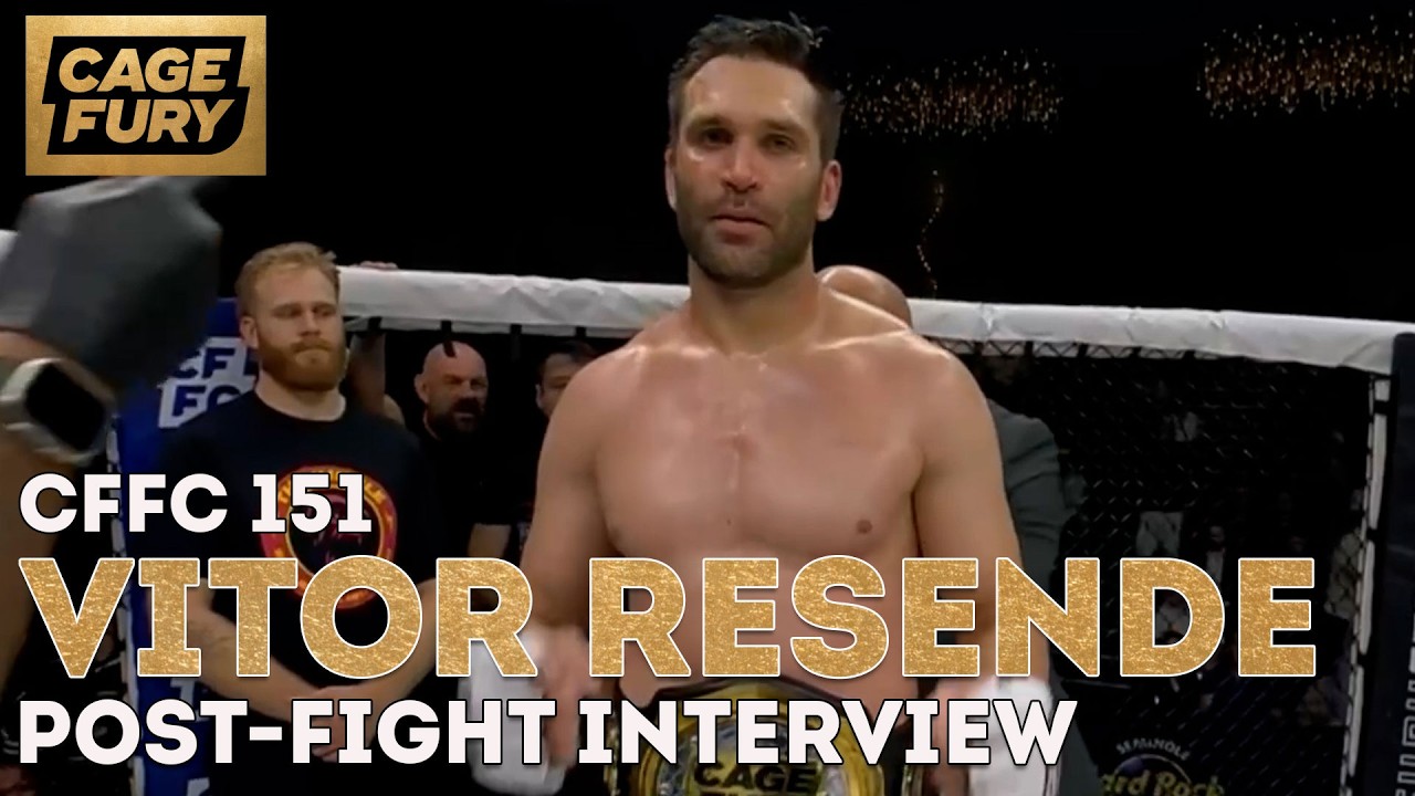Newly crowned CFFC Heavyweight Champion Vitor Resende reacts after defeating Larry Gonzales by split decision in the CFFC 151 main event. Resende speaks with the media about the grueling fight, claiming Cage Fury gold, and what could come next after capturing the heavyweight championship. Watch more highlights, finishes, interviews, and championship moments from Cage Fury Fighting Championships.