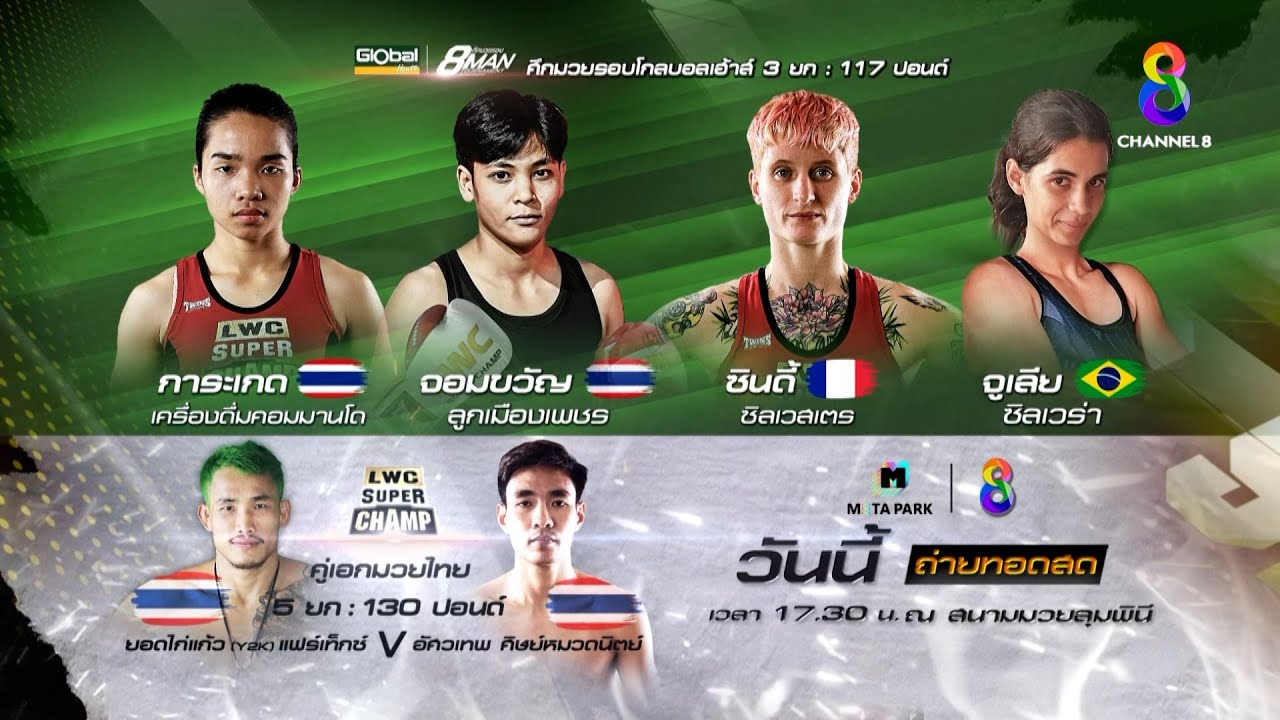 📺🥊วันนี้! ห้ามพลาด! ศึกมวยไทยนานาชาติ "LWC Super Champ" ลุมพินีเวิลด์ แชมป์เปี้ยนชิป ซุปเปอร์แชมป์ 🥊ศึกมวยรอบโกลบอลเฮ้าส์ 8man tournament มวยหญิง พิกัด 117 ปอนด์ สาย B การต่อสู้แบบแพ้คัดออก ของ 4 ยอดสาวแกร่งจากทั่วโลก 🥊การะเกด เครื่องดื่มคอมมานโด ดาวรุ่งสาวกำปั้นหนัก จากเพชรบุรี,จอมขวัญ ลูกเมืองเพชร จอมเตะแข้งอันตราย จากโคราช,ซินดี้ ซิลเวสเตร สาวน้ำหอมขาลุย จอมอึด จากฝรั่งเศส,จูเลีย ซิลเวร่า สาวแซมบ้าพันธุ์เดือด จอมตื้อ จากบราซิล 🥊ศึกไต่บัลลังก์ลุมพินี พิกัด 130 ปอนด์ นักสู้สองสไตล์ ยอดไก่แก้ว แฟร์เท็กซ์ จอมเก๋าเหลี่ยมจัด จากพิจิตร พบ มวยแกร่งแข้งเทพ อัศวเทพ ศิษย์หมวดนิตย์ มวยจอมหวด จากเมืองกรุง พร้อมมันส์กับคู่มวยคุณภาพ ที่แฟนมวยจะลุ้นระทึกกันทุกวินาที ณ สนามมวยลุมพินี! เวลา 17.30 เป็นต้นไป ถ่ายทอดสดทาง #ช่อง8 📺 รับชมรายการมวยสุดมันส์ได้ที่ 👉 https://bit.ly/Muaych8 และ https://www.youtube.com/channel/UCGbGuLCFurHwawIvUAH6Y2Q #ศึกมวยรอบโกลบอลเฮ้าส์ #โกลบอลเฮ้าส์ #ครบหลากหลายให้บ้านคุณ #เงินไชโย #สินเชื่อจำนำทะเบียนรถ #metapark #LWCSuperChamp #สนามมวยเวทีลุมพินี #มวยช่อง8 #Muaych8 #ใครๆก็ดูช่อง8กดเลข27 #Ch8KingOfFightingSports http://www.facebook.com/muaych8 https://www.tiktok.com/@muaych8 http://instagram.com/muaych8 https://twitter.com/thaich8 http://www.thaich8.com