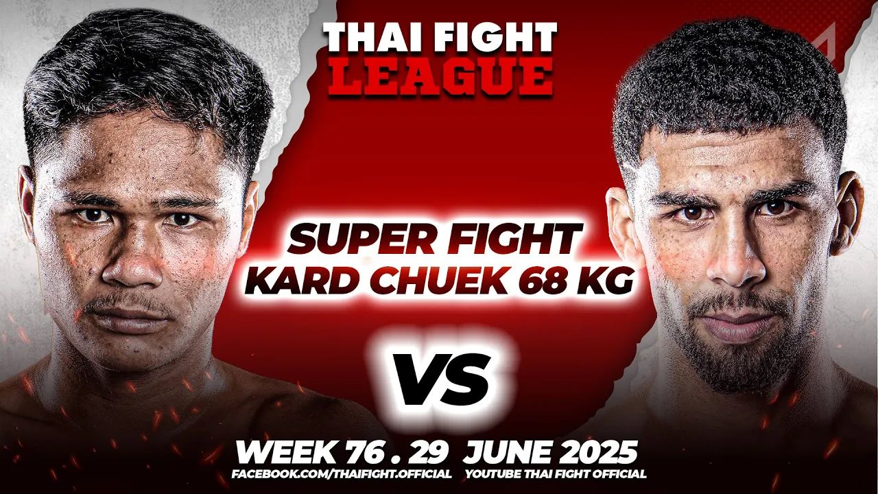 Get ready for an action-packed evening as Thai Fight League presents the Isuzu Thailand Championship 2025 on Sunday, June 29. Highlights include Lower-Isan vs. Upper-Isan in the 63 kg bout with “Ploypanlan Gumpun Muaythai” vs. “Chaiburi Looksinghanamchai,” Central vs. South in the 61 kg clash between “Yodkomkrit Sor.Sunan” and “Petch-Ubon Sor. Tianchai,” and Lower-Isan vs. East in the 65 kg fight with “Sainampetch Muaythai Active” vs. “Fahnimit Vor.Techno-Luangpoosuang.” The excitement heats up with the “Kaimook Kard Chuek” battle between “Sakulchailek The Pangkongprap” and “Ali Bahrami Samet,” along with appearances by Thai Fight League stars “Worachaklek Kiatchatchai” and “Chalarmdam Sor.Samakom.” . THAI FIGHT LEAGUE #76 🗓️ On Sunday, June 29, 2025 📍 At WORLD SIAM STADIUM, Tawanna, Bang kapi ⏰ LIVE 6 p.m. to 8 p.m. (ICT) 📺 TH Channel 8 Press 27 (TH & EN) 🇹🇭 ไลฟ์สด: youtu.be/watch?v=X97HIrIGoKw . #ThaiFightLeague #THAIFIGHT #KardChuek #ไทยไฟท์ลีก #ไทยไฟท์ #ไทยไฟท์ล่าสุด #muaythai #MuayBoran #thaifightkardchuek . Facebook : Thai Fight : https://www.facebook.com/thaifight.official/ Instagram : https://www.instagram.com/thaifight_official/ Twitter : https://twitter.com/THAIFIGHT_TWT Tiktok : https://www.tiktok.com/@thaifight.official Website : http://www.thaifight.com/