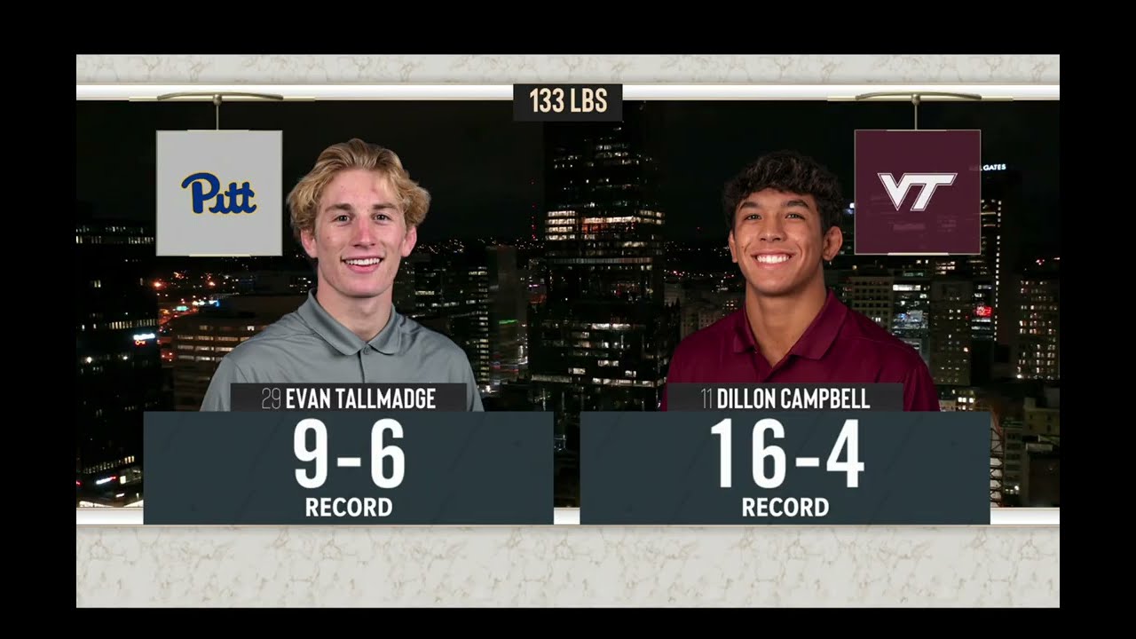 2025/26 Pitt vs Virginia Tech wrestling dual 133lbs #11 Dillon Campbell (VTECH) dec #29 Evan Tallmadge (PITT) I do not own this video, all credit/rights to ESPN/ACC
