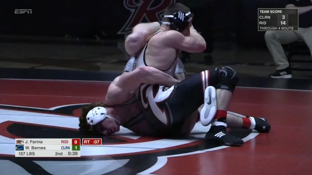 2025/26 Rider vs Clarion wrestling dual 157lbs James Farina (RID) maj dec Wesley Barnes (CLAR) I do not own this video, all credit/rights to ESPN/MAC
