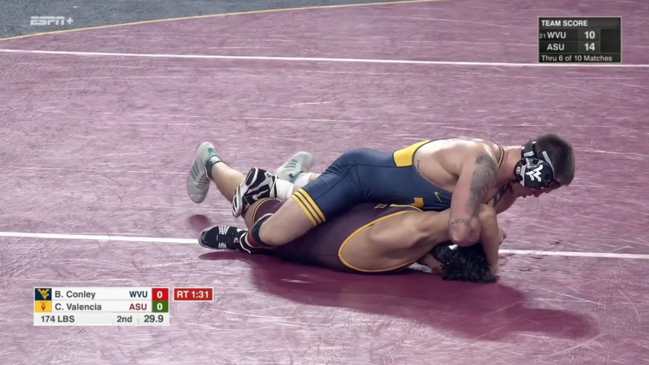 2025/26 Arizona State vs West Virginia wrestling dual 174lbs #20 Brody Conley (WVU) dec Cael Valencia (ASU) I do not own this video, all credit/rights to ESPN/Big 12