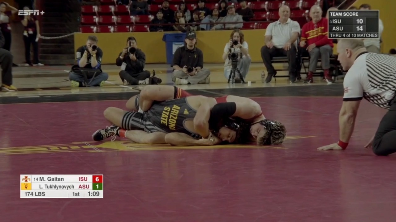 2025/26 Arizona State vs Iowa State wrestling dual 174lbs #14 MJ Gaitan (ISU) tech fall Leo Tukhlynovych (ASU) I do not own this video, all credit/rights to ESPN/Big 12