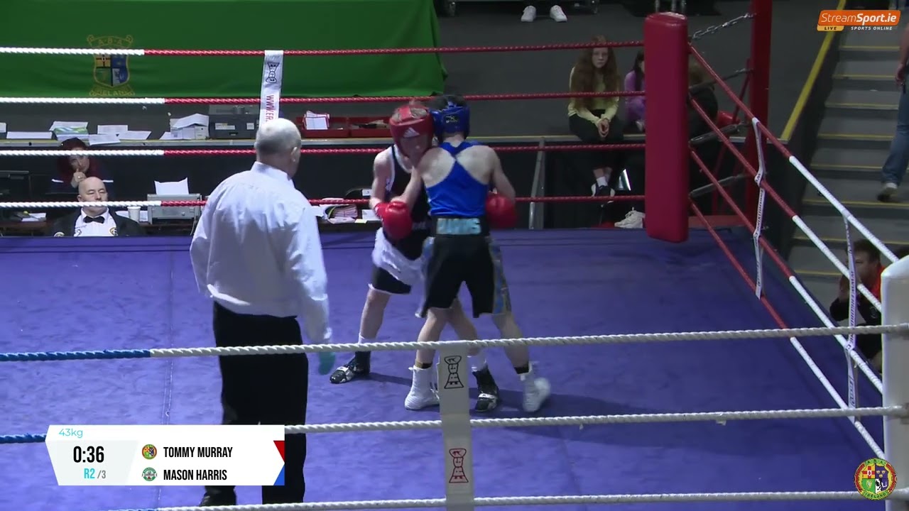 Tommy Murray (Sliabh Luachra) and Mason Harris (Baldoyle) contested the 2024 National B2 Championship 43kg semi-final, streamed by @streamsport-ie7508 #boxing #boxingireland #boxer #irishboxing #IABA #olympicsport #bout #fight #titleboxing #boxingnews #boxeo #boxe #Box