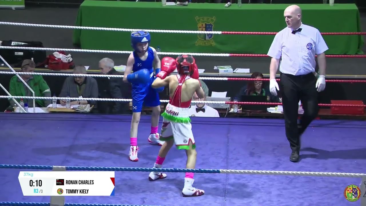 Ronan Charles (Elite) and Tommy Kiely (Glen) contest this 2024 National BG2 Championship 37kg quarter final, streamed by @streamsport-ie7508 #boxing #boxingireland #boxer #irishboxing #IABA #olympicsport #iaba #bout #fight #titleboxing #bout #championshipboxing