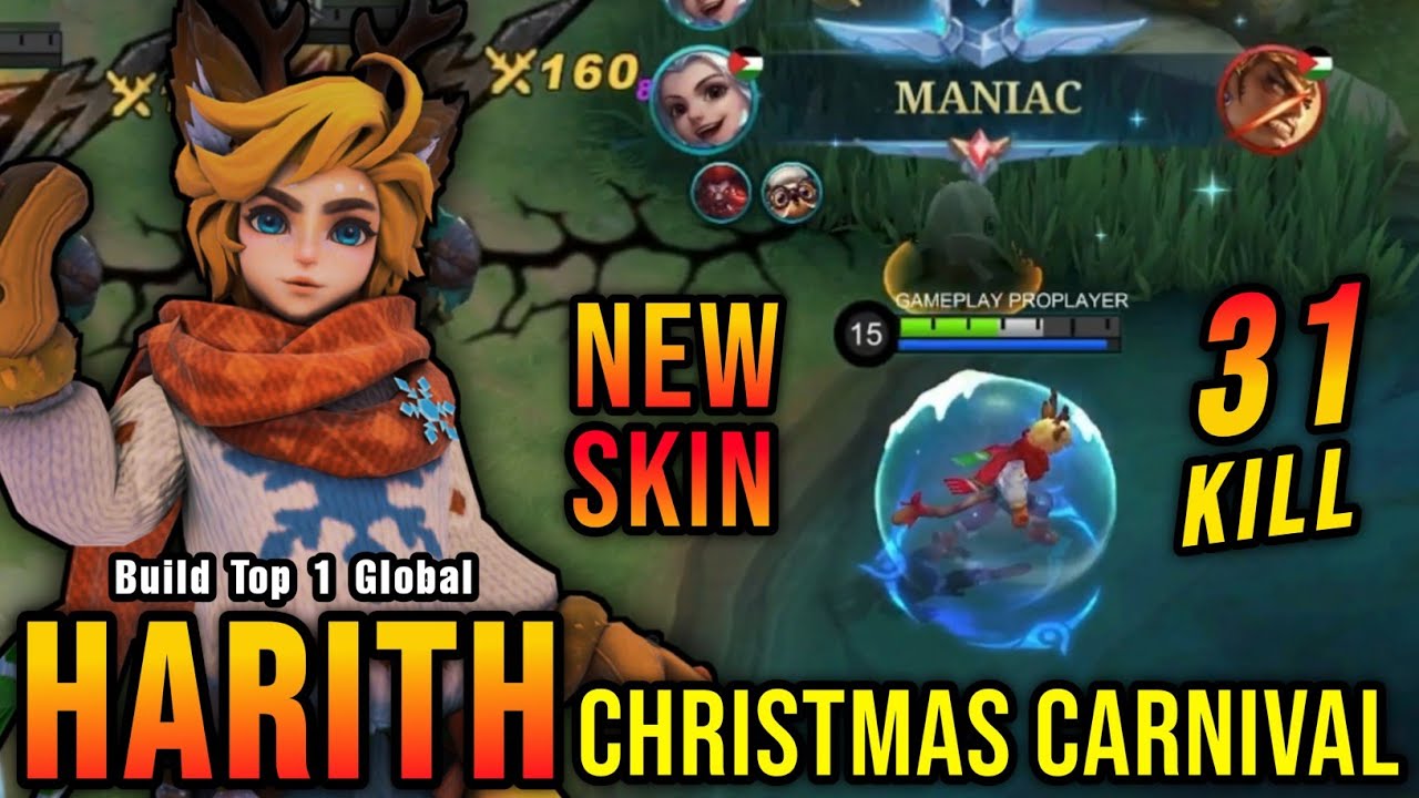 31 Kills + MANIAC!! Harith Christmas New Skin Gameplay!! - Build Top 1 Global Harith ~ MLBB