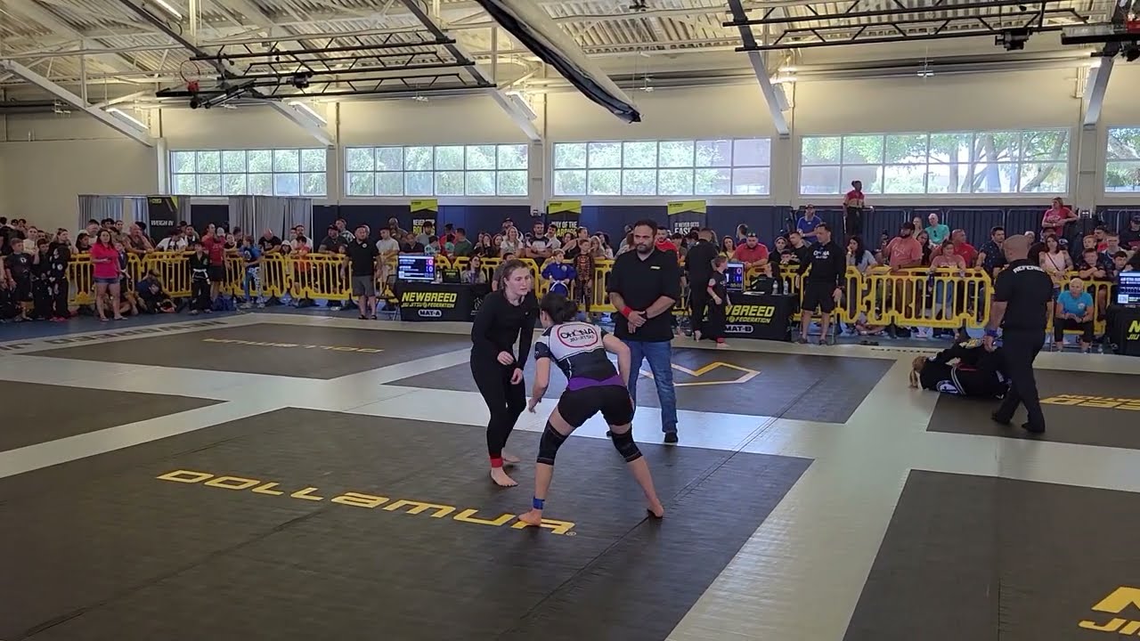 Aggressive Female BJJ Match Has Some Good Technique And A Choke Finish.