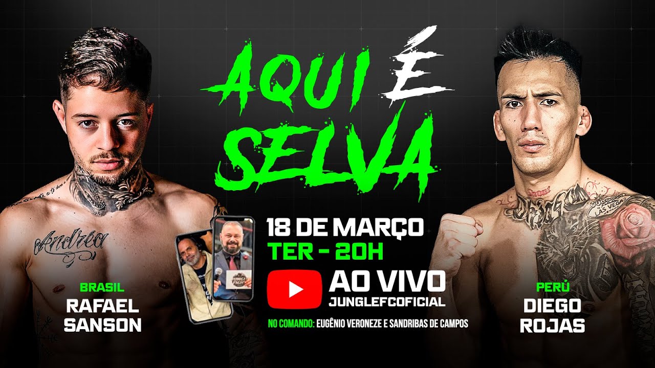 É AMANHÃ , a maior resenha do mma nacional recebendo os GUERREIROS DA SELVA Rafal Sanson e Diego Rojas, para um bate-papo, entrevista e trash talk para o próximo Jungle Fight 135 em BRASÍLIA. Vocês estão preparados?? É AMANHÃ às 20h (horário de Brasília) teremos a 68ª edição do programa semanal “AQUI É SELVA” no YouTube oficial do Jungle. A maior resenha do mma nacional! 💥No comando de @sandribasdecampos e @eugenioveroneze . Se inscreva no Jungle Fight TV 💥 / @junglefcoficial 💥 não fique de fora dessa!💥 te espero ao vivo pontualmente hoje às 20h