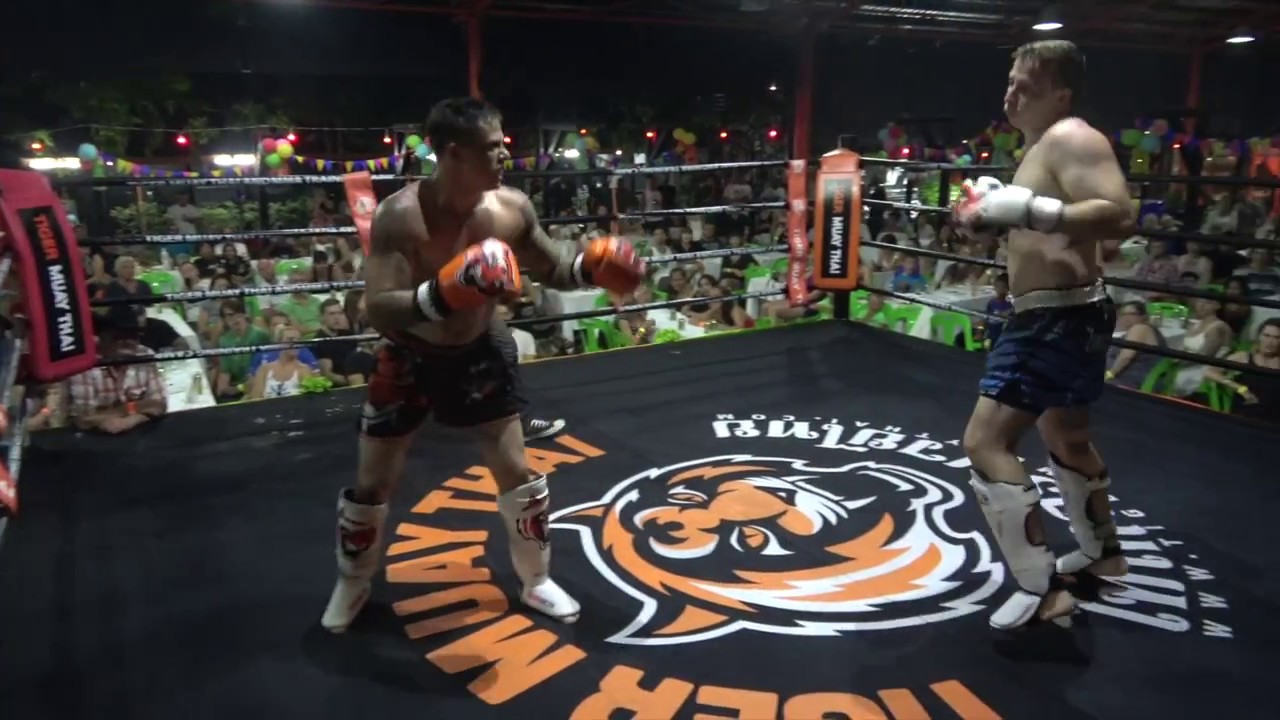 Tiger Muay Thai and MMA training camp held the 105th BBQ Beatdown event on the 25th of March 2017. This monthly full moon party event features all you can eat food and drink, music from a professional DJ, and amateur fights in Muay Thai, MMA, BJJ and western boxing. In this amateur Muay Thai bout, Klaye from Canada (black/orange shorts) fights Chris from Germany (black/blue shorts). http://www.tigermuaythai.com/