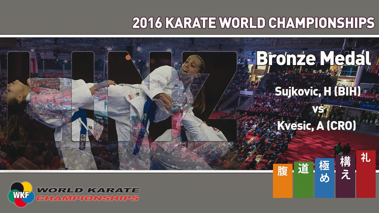 Haris Sujkovic of Bosnia and Herzegovina vs Andjelo Kvesic of Croatia. Bronze Medal bout. Male Kumite +84kg. World Karate Championships 2016, Linz, Austria. SUBSCRIBE ► http://bit.ly/N7c4H0 Official World Karate Federation YouTube channel for the distribution and broadcast of Karate Championships. *********************************** The World Karate Federation in Social Media: YouTube: https://www.youtube.com/user/WKFKarateWorldChamps Instagram: http://instagram.com/worldkaratefederation Twitter: https://twitter.com/wkf_tweet Facebook: https://www.facebook.com/wkfofficial Web: http://wkf.net/