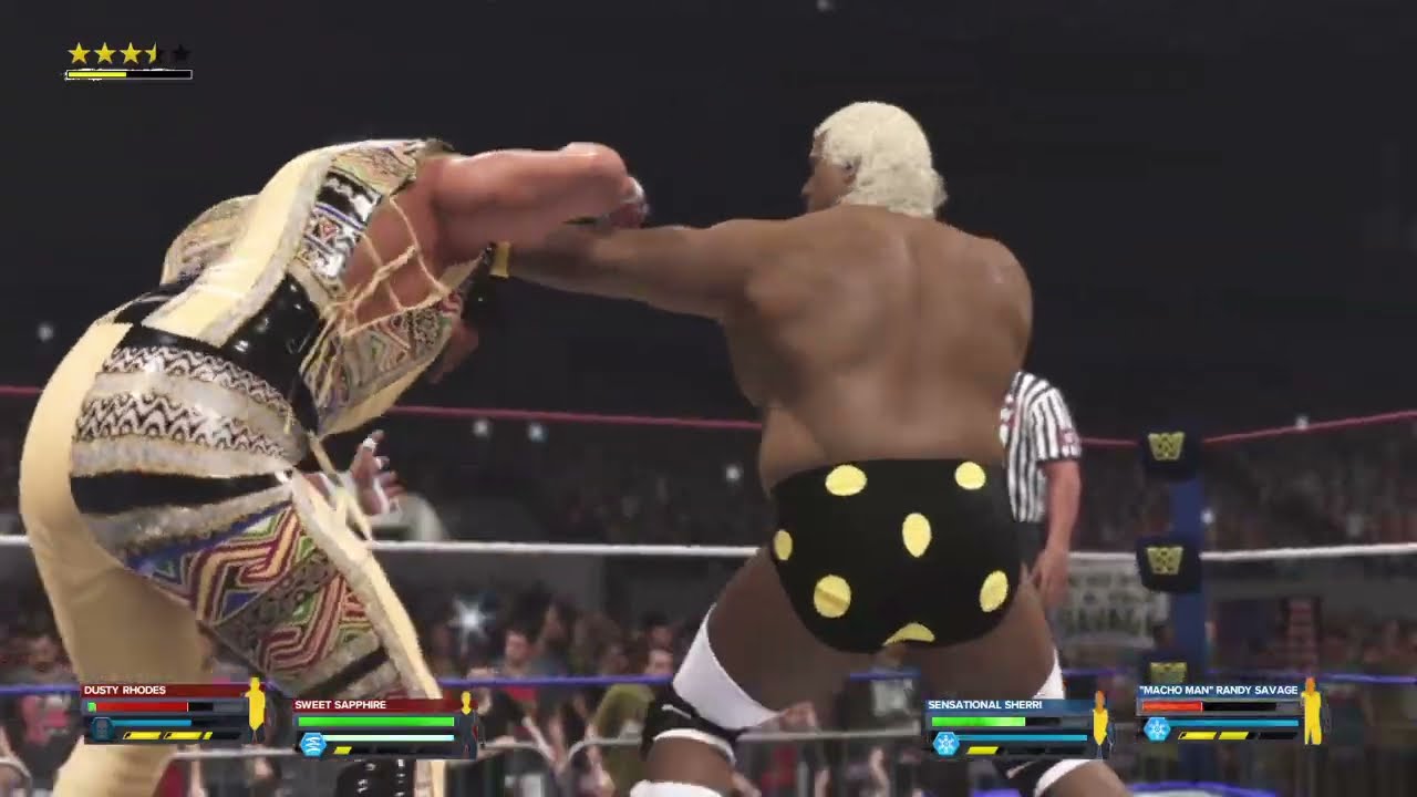 Dusty Rhodes & Sapphire vs The Macho King & Sherri. WrestleMania 6. WWE 2K24