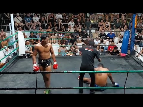 Both fighters are trainers in Koh Phangan. Mario (red) works at M19 Muay Thai. Pechrung (blue) works at Rajanon Muay Thai. Mario is the more experienced but does not fight regularly. Pechrung fights more often and has shown a natural talent, knocking out his last 3 opponents. This fight was highly anticipated by the local muay thai community. The opening betting was favouring Mario. @muaythaisland #kohphangan #muaythai #boxing #muaythaifamily #thaiboxinglife