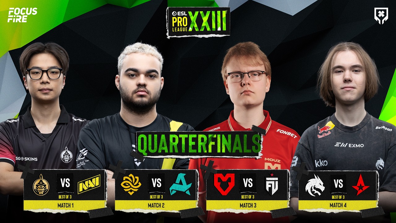 ESL Pro League Season 23 Official Filipino Broadcast! Quarter-Finals: (BO3) The MongolZ vs NAVI (5:00PM PHT) Legacy vs Aurora (8:15PM PHT) MOUZ vs FUT Esports (11:30PM PHT) Spirit vs Astralis (2:45AM PHT) 📣 FOLLOW FocusFire: 🔴 Youtube: https://www.youtube.com/@FocusFireStudio 📘 Facebook: https://www.facebook.com/focusfiregaming/ 💚Kick: https://kick.com/focusfiregaming 🟣Twitch: https://www.twitch.tv/focusfirestudio ⚫Tiktok: https://www.tiktok.com/@focusfirecsgo ➡️ Telegram: https://tinyurl.com/GiveawayTG #CS2 #esl #eslproleague #season23 #LIVE #Focusfiregaming #Luponwxc #Philippines #LakadMatatag
