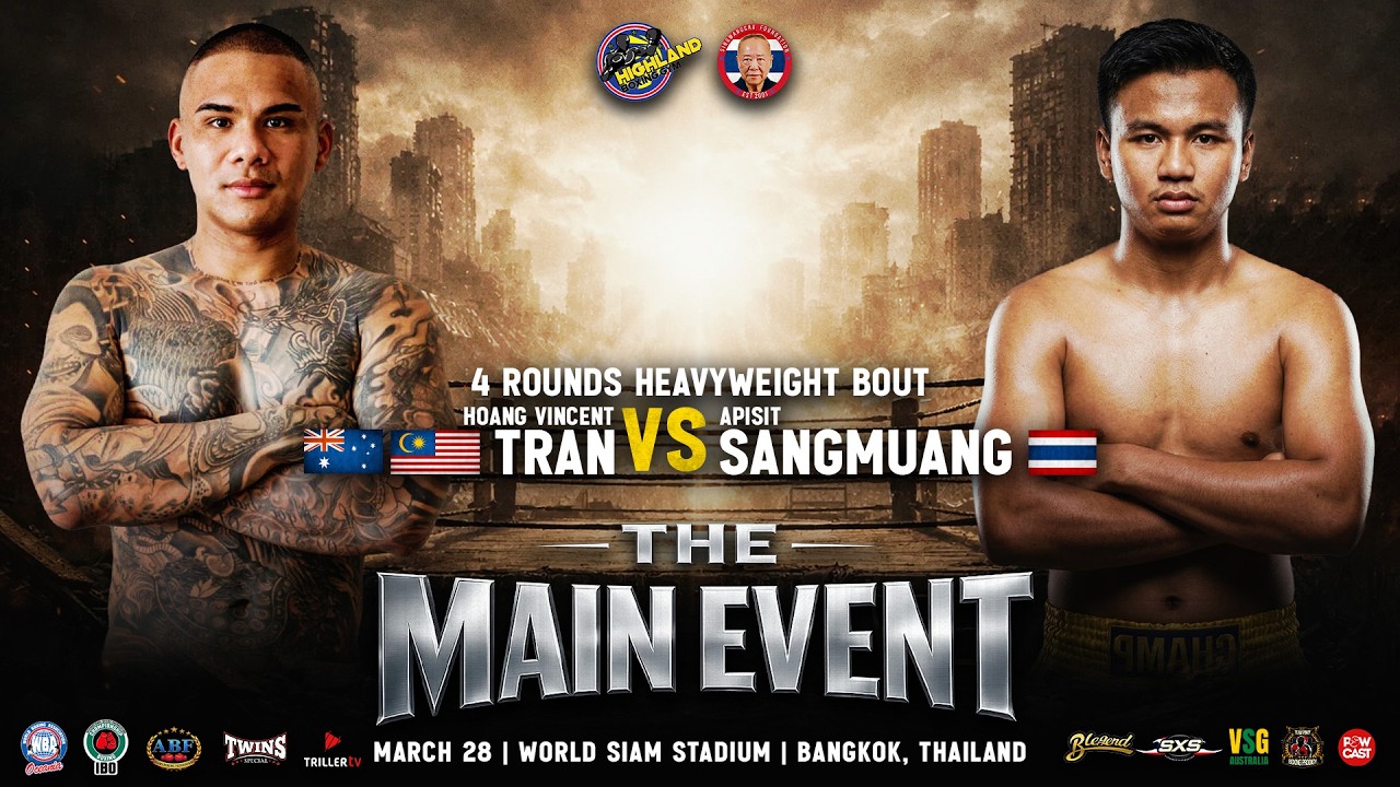 Australia/Malaysia’s Hoang Vincent Tran steps into the ring against Thailand’s Apisit Sangmuang in a clash of power and presence. Expect heavy hands and explosive moments as these heavyweights look to make a statement. 📍 March 28, 2026 📍 World Siam Stadium | Bangkok, Thailand This is boxing at its finest. Power. Impact. Knockouts. #HoangVincentTran #ApisitSangmuang #Boxing #Heavyweight #FightNight #BangkokFightNight #WorldSiamStadium #BoxingHighlights #Undercard #Knockout #CombatSports
