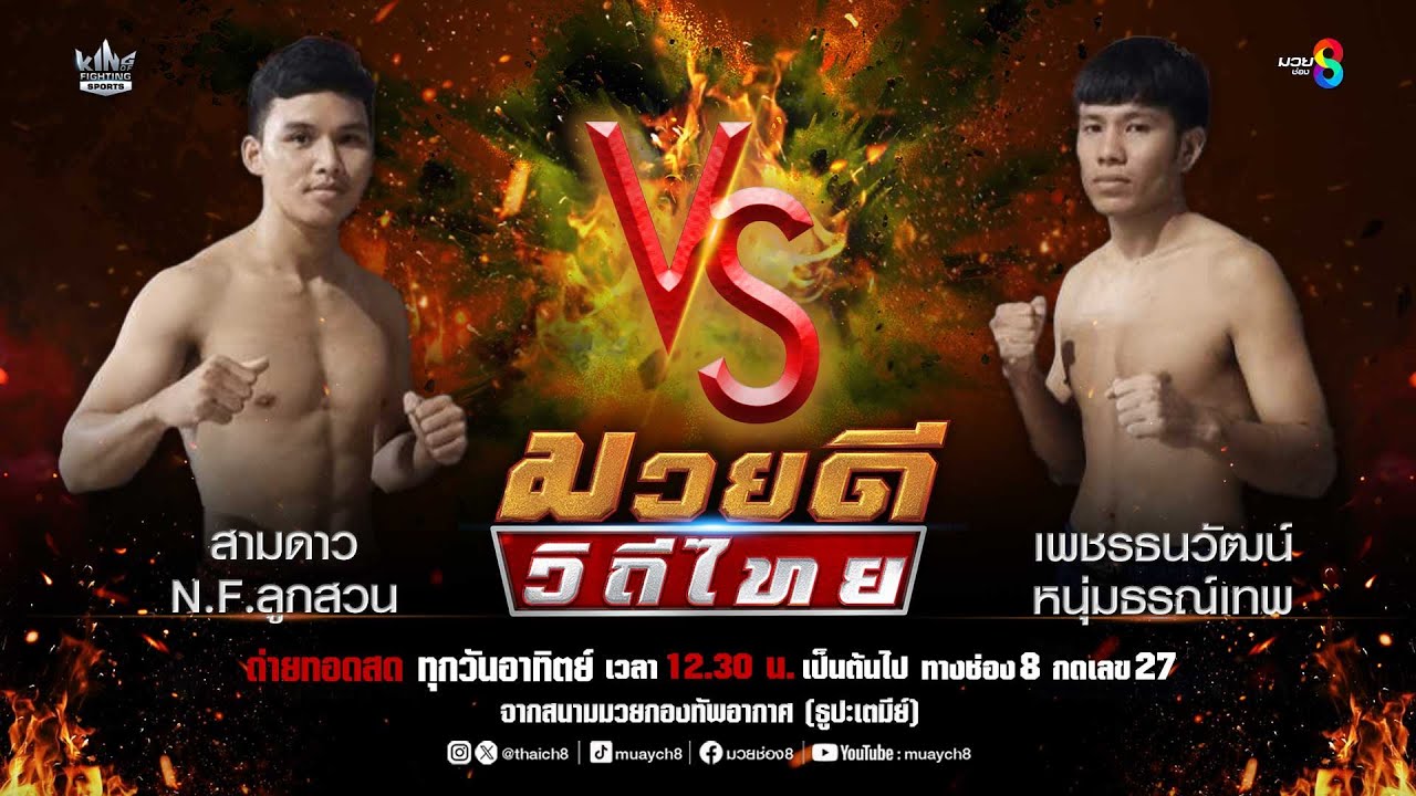 "มวยดีวีถีไทย" ความมันส์มวยไทยที่ระทึกใจทุกวินาที! จาก เวทีมวยกองทัพอากาศ (ธูปะเตนีย์) นัดประจำวันอาทิตย์ที่ 24 ส.ค. 2568 สด! ทุกวันอาทิตย์ เวลา 12.30 น. เป็นต้นไป ทาง #ช่อง8 สุดยอดมวยมันส์และลุ้นสะใจไปกับ King of Fighting Sports มวยมันส์ ต้องดูช่อง 8 กดเลข 27 ที่ #ช่อง8 #กดหมายเลข27 📺รับชมรายการมวยสุดมันส์ได้ที่ 👉 https://bit.ly/Muaych8 #มวยดีวิถีไทย #มวยไทย #ศึกจิตรเมืองนนท์ #มวยคู่เอก #มวยไทยเงินล้าน #มวยช่อง8 #ช่อง8กดเลข27 #Ch8KingOfFightingSports http://www.facebook.com/muaych8 https://www.tiktok.com/@muaych8 http://instagram.com/muaych8 https://twitter.com/thaich8 http://www.thaich8.com