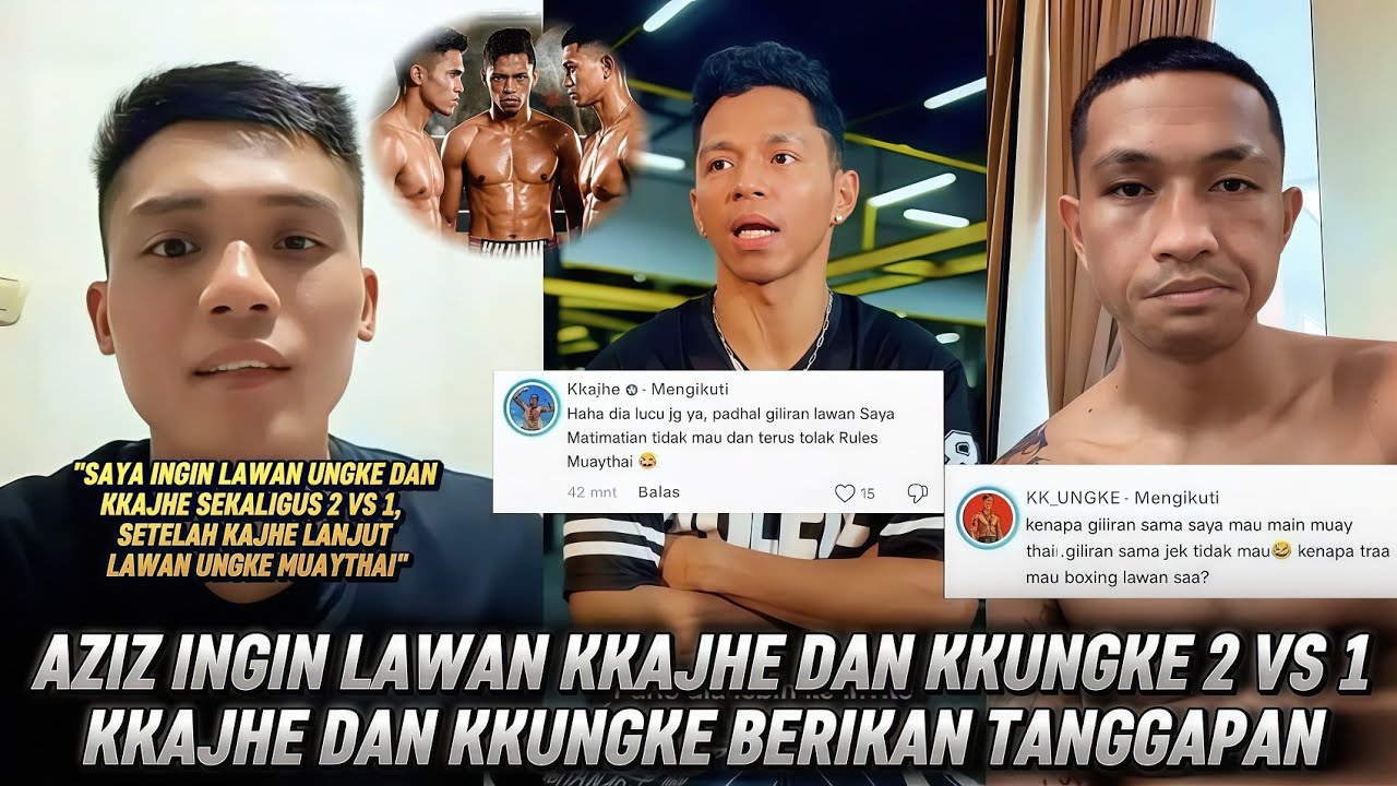 Aziz calim ingin hadapi kkungke dan kkajhe sekaligus dua melawan satu, aziz siap kalahkan kkajhe di boxing lalu melanjutkan pertandingan melawan kkungke di rulles muaythai dalalm satu malam ia ingin mengalahkan keduanya. Kkajhe dan kkungke langsung berikan tanggapn terkait statment aziz calim. Copyright Disclaimer: - Under section 107 of the copyright Act 1976, allowance is mad for FAIR USE for purpose such a as criticism, comment, news reporting, teaching, scholarship and research. Fair use is a use permitted by copyright statues that might otherwise be infringing. Non- Profit, educational or personal use tips the balance in favor of FAIR USE.