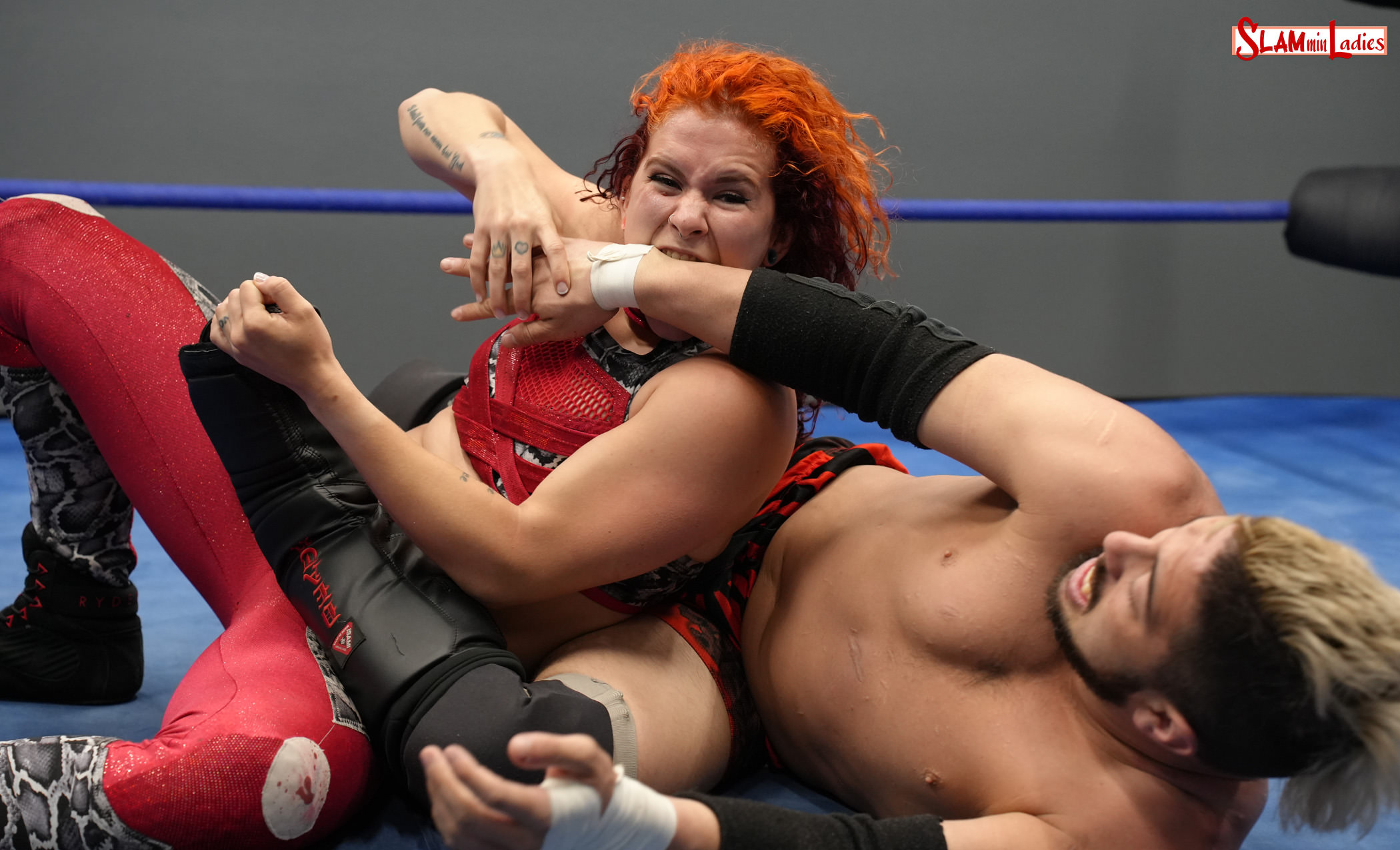 What do you get when you combine the hard-hitting Masha Slamovich with the innovation and speed of AKIRA? You get a truly enthralling match with some unique escapes and pin attempts from AKIRA, and plenty of gasps at the stiff attacks from Masha. The two open with a high-speed sequence featuring plenty of reversals and pin attempts. Masha stops Akira’s momentum by stomping on his foot, then chokes him on the mat and against the ropes, before nailing him with a Suplex for a 2 count. The two trade chops and kicks, as well as less-than-legal maneuvers, such as the moment when AKIRA grabs a handful of Masha’s hair, but leaves his hand wide open for a chomp from Masha to get him to release her hair. Masha tries to keep AKIRA grounded with chokes, facelocks on the mat, a Camel Clutch, and numerous judo-style armbars on the mat. The creative AKIRA works his way out of Masha’s submissions, including one escape that he quickly transitions into a bridging Chinlock on Masha. The two bruisers battle back and forth until one manages to catch the other in a Boston Crab, then adds a little extra to crank up the pain for a match-ending hold that looks as painful as it must feel.