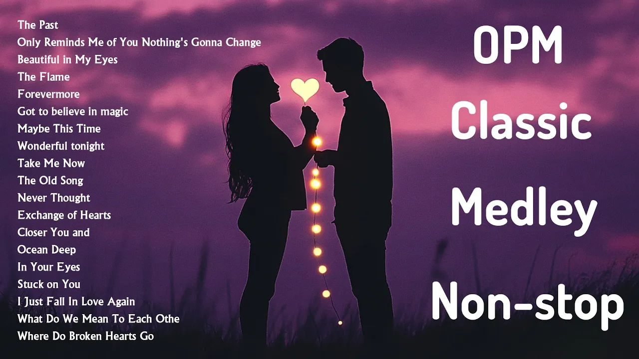 The "OPM Classic Medley Non-stop - Best OPM Love Songs of All Time" is a captivating collection of the most cherished Filipino love songs, seamlessly blended into a non-stop medley that celebrates the rich legacy of Original Pilipino Music (OPM). Featuring timeless ballads and heartwarming melodies, this compilation brings together some of the greatest hits from renowned Filipino artists, spanning decades of unforgettable love songs. From the soulful lyrics of classic serenades to the passionate tunes that have defined Filipino romance, the medley transports listeners into a world of nostalgia, love, and emotion. Perfect for any moment of reflection or romantic occasion, this non-stop mix captures the essence of Filipino musical artistry, reminding everyone of the deep connections and heartfelt expressions that transcend time and place. Whether enjoyed alone or shared with loved ones, it’s a musical journey through the unforgettable sounds of OPM that continue to resonate in the hearts of listeners everywhere