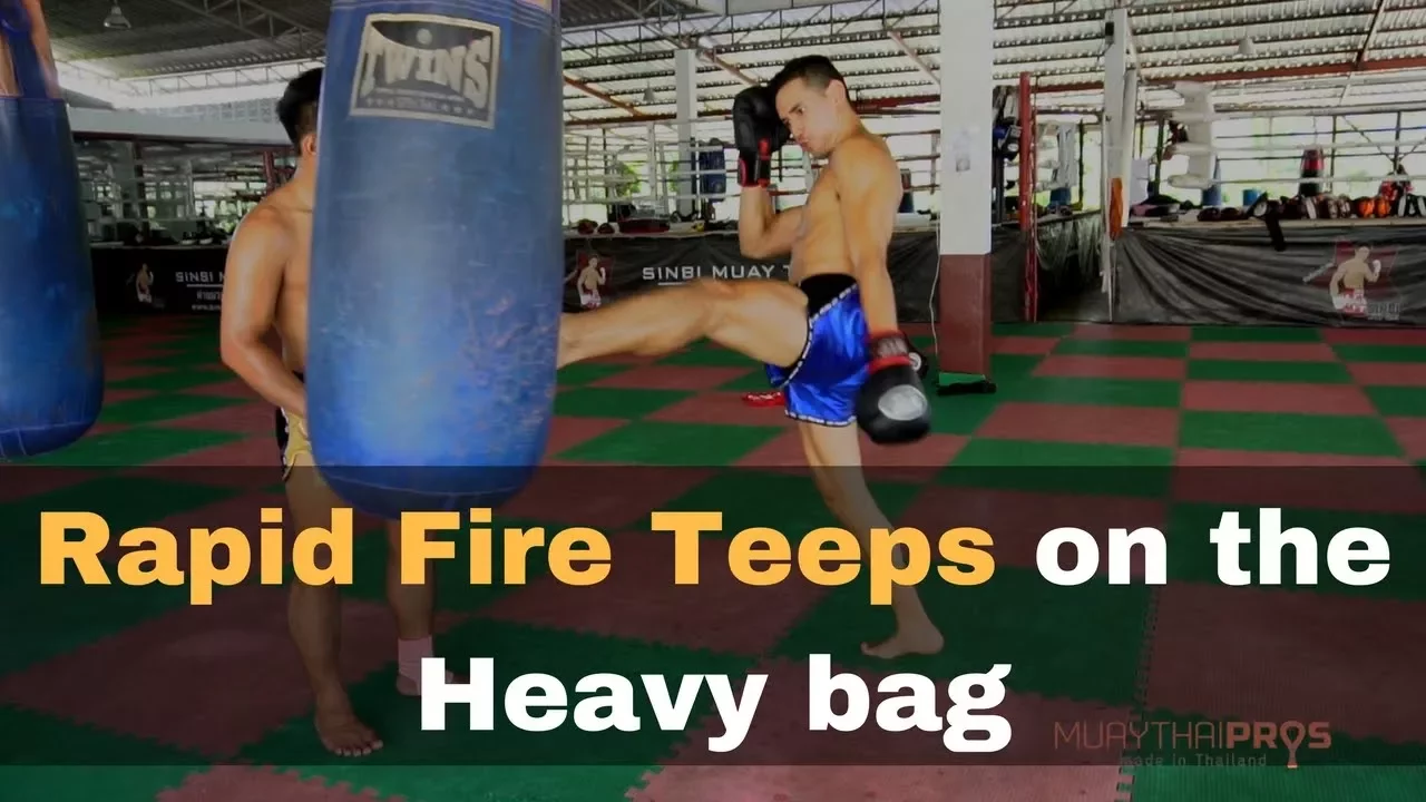 Use rapid fire teeps on the heavy bag to improve your timing, balance and power in your teeps. This video showcases trainer Ann demonstrating rapid fire teeps and making corrections also.
