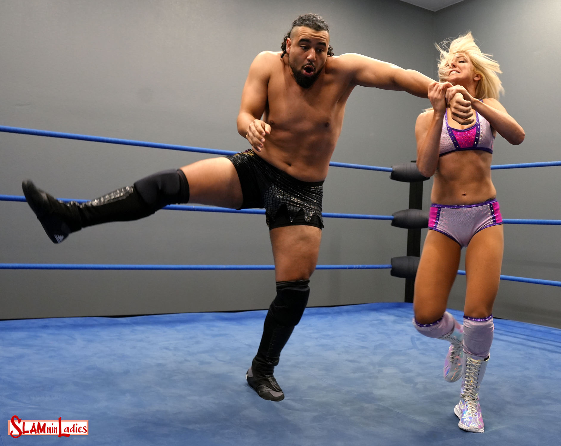 Ray’s so excited for this match that she’s rhyming and right from the opening lockout it’s like poetry in motion as they trade arm and wrist holds so fast if you blink you probably miss at least 2 of them. Both wrestlers impress as they give and take equally, with Jay’s ego maybe a little bruised. Jay shifts gears and tries to play mind games with an out of reach offer for a test of strength, only for Ray to get some air to grab the outstretched hand and is rewarded by being overpowered and ending up in an anklelock. But she not only rhymes but is resourceful and soon Jay is feeling a half Crab that maybe Ray should not have admitted hurt her back a little as well. Jay’s not quite done being a nice guy but he does land some hard strikes before Ray’s long legs get tied up like a pretzel ending in a Trailer Hitch variant. Ray manages to get out of the frying pan briefly but she’s too hobbled to evade and soon is back in the very same fire. Ray manages another clever escape but Jay is feeling it and starts to really take it to her as his power advantage finally comes into play. He wants to take Ray for a nasty ride but she has a ride of her own in mind if she knows what will happen if she lets go!
