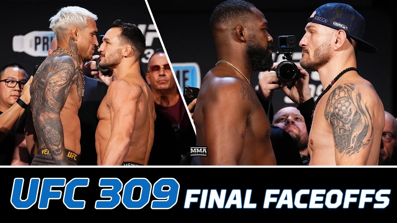 Watch Jon Jones, Stipe Miocic, Michael Chandler, Charles Oliviera, and the rest of the #UFC309 card face off for the final time before their fights inside Madison Square Garden. Join this channel to get access to perks: https://www.youtube.com/cha.../UC4f1JueVgo5t9HSmobCRPug/join Subscribe to MMA Fighting on YouTube: http://goo.gl/dYpsgH Subscribe to MMA Fighting feed on iTunes: https://podcasts.apple.com/.../mma-fighting/id320642139 Check out our full video catalog: http://goo.gl/u8VvLi Visit our playlists: http://goo.gl/eFhsvM • Like MMAF on Facebook: https://www.facebook.com/mmafighting • Follow on Twitter: https://x.com/MMAFighting • Follow on Instagram: https://www.instagram.com/mmafighting • Follow on TikTok: https://www.tiktok.com/@mmafighting • Subscribe on Twitch: https://www.twitch.tv/mmafightingsbn Read More: http://www.mmafighting.com MMA Fighting is your home for exclusive interviews, live shows, and more for one of the world's fastest-growing sports. Get latest news and more here: http://www.mmafighting.com See less