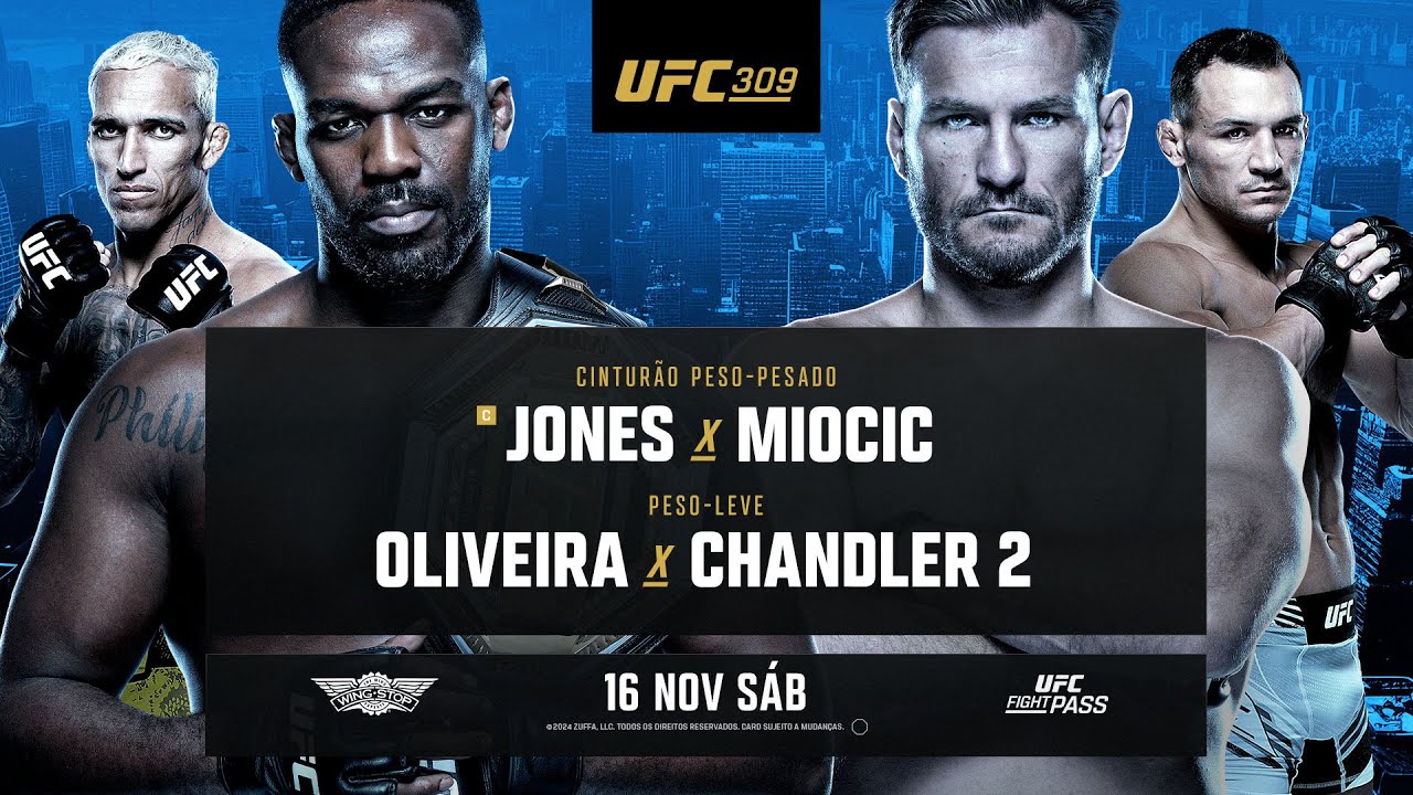O maior de todos os tempos está de volta: atual campeão peso-pesado, Jon "Bones" Jones coloca seu título em disputa pela primeira vez contra Stipe Miocic, atleta com mais defesas de cinturão na história da categoria, na luta principal do #UFC309, no Madison Square Garden, em Nova York. Na luta co-principal da noite, o ex-campeão peso-leve Charles "do Bronxs" Oliveira faz uma aguardada revanche contra Michael Chandler. Não perca o #UFC309, dia 16 de novembro às 20 horas no #UFCFightPass. Assine já: https://ufc.ac/description-UFC Se inscreva para ter todo o conteúdo mais recente do UFC Brasil: https://ufc.ac/3ofRm20 Conecte-se com o UFC em todas as plataformas: 🔴 Website: http://www.ufc.com.br 🔵 Facebook: https://www.facebook.com/UFCBrasil 🟣 Instagram: https://www.instagram.com/ufc_brasil/ ⚫️ TikTok: https://www.tiktok.com/@ufcbrasil ⚫️ X: https://twitter.com/UFCBrasil Cadastre-se para receber notícias e conteúdo exclusivo do UFC no seu email: https://www.ufc.com.br/newsletter