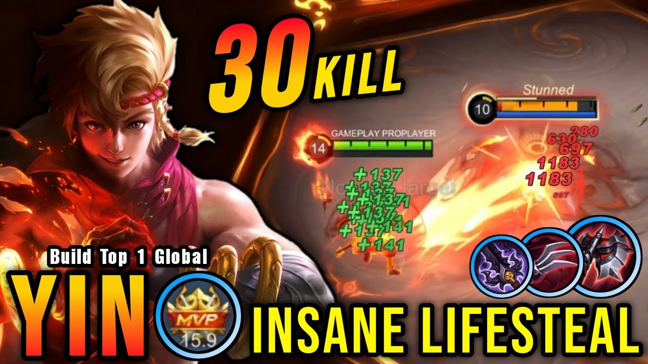 WTF DAMAGE!! 30 Kills Yin Best One Shot Lifesteal Build!! - Build Top 1 Global Yin ~ MLBB